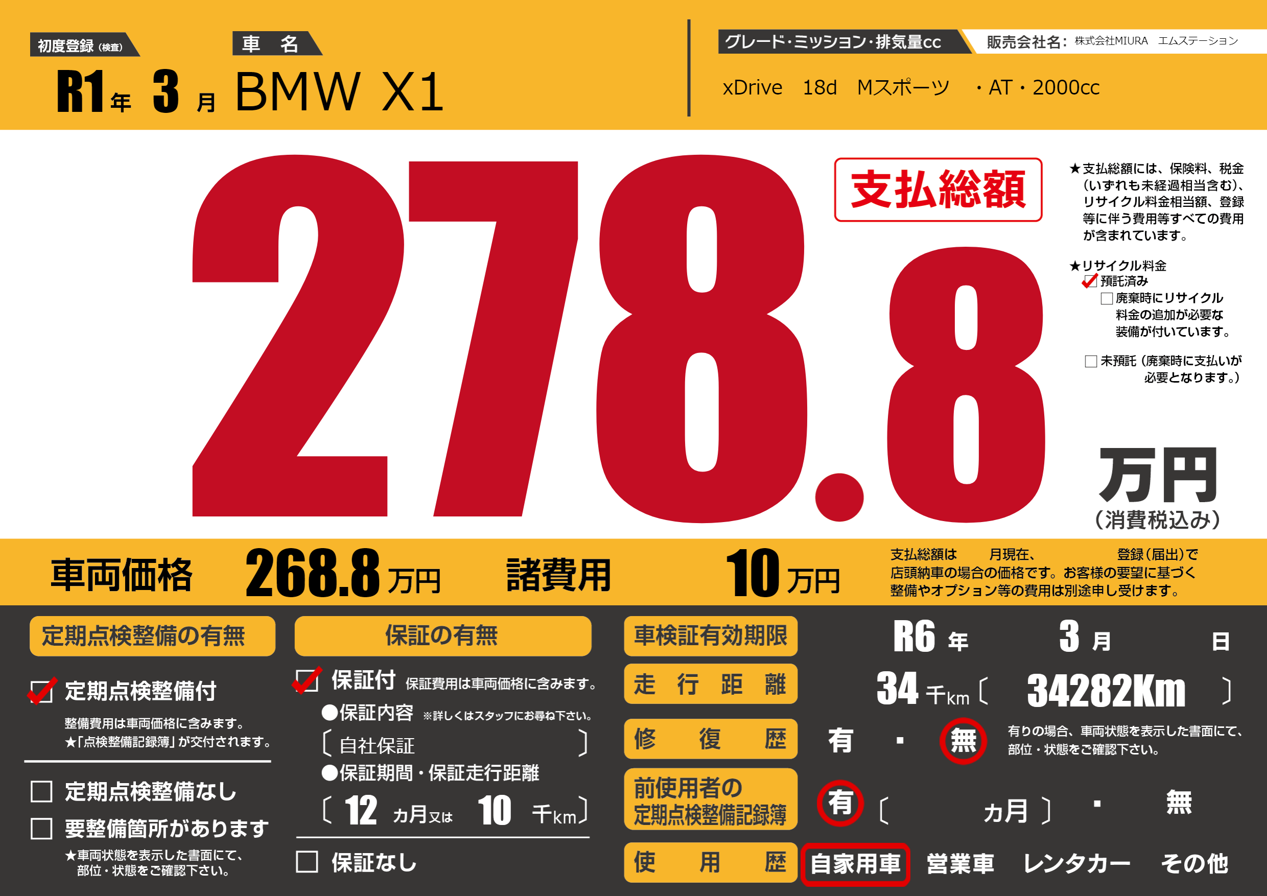 | 車検制限 | R6年 3月 - 日 | ||