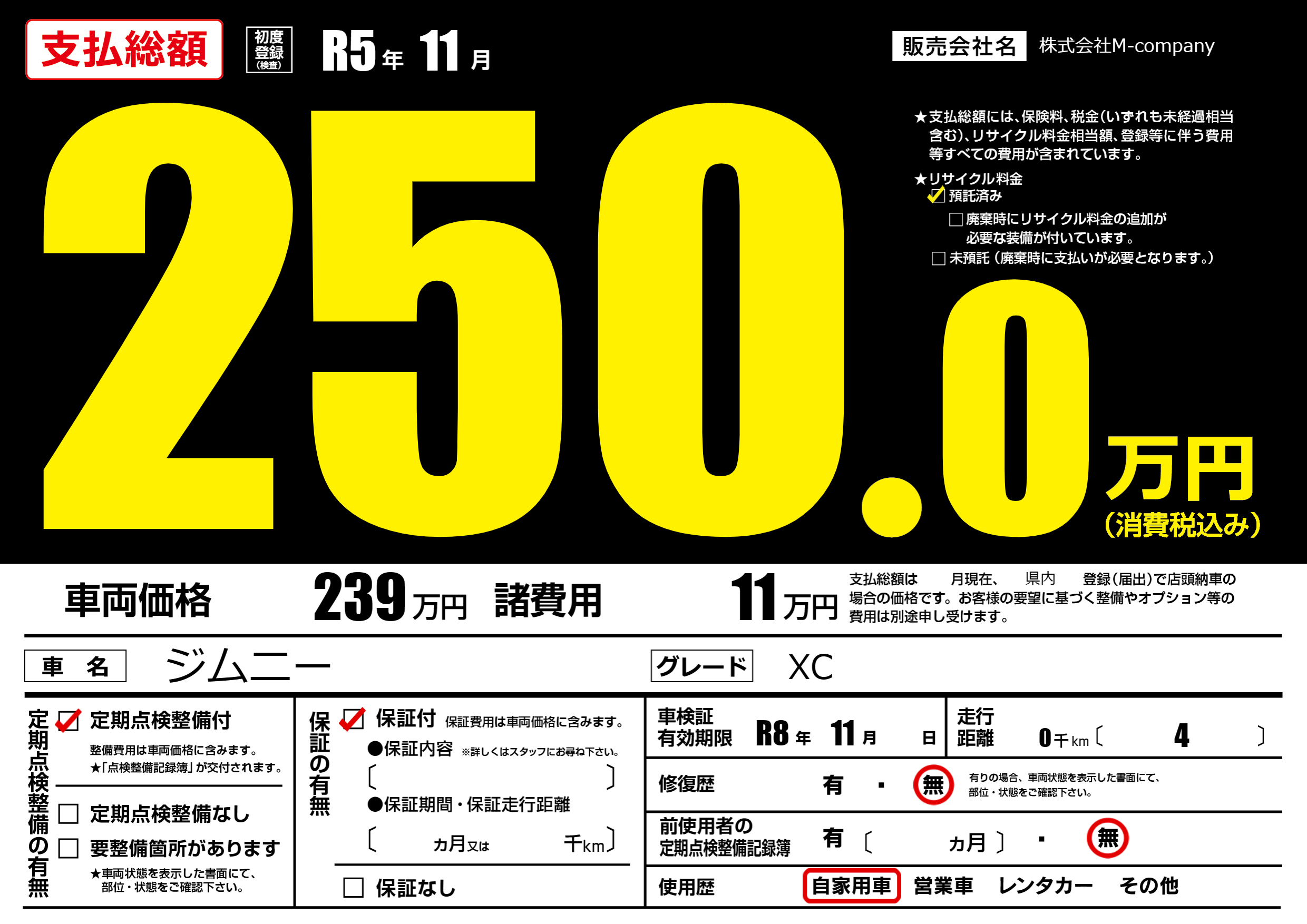 | 走行キロ | - | 初年度登録 | R5年11月 |