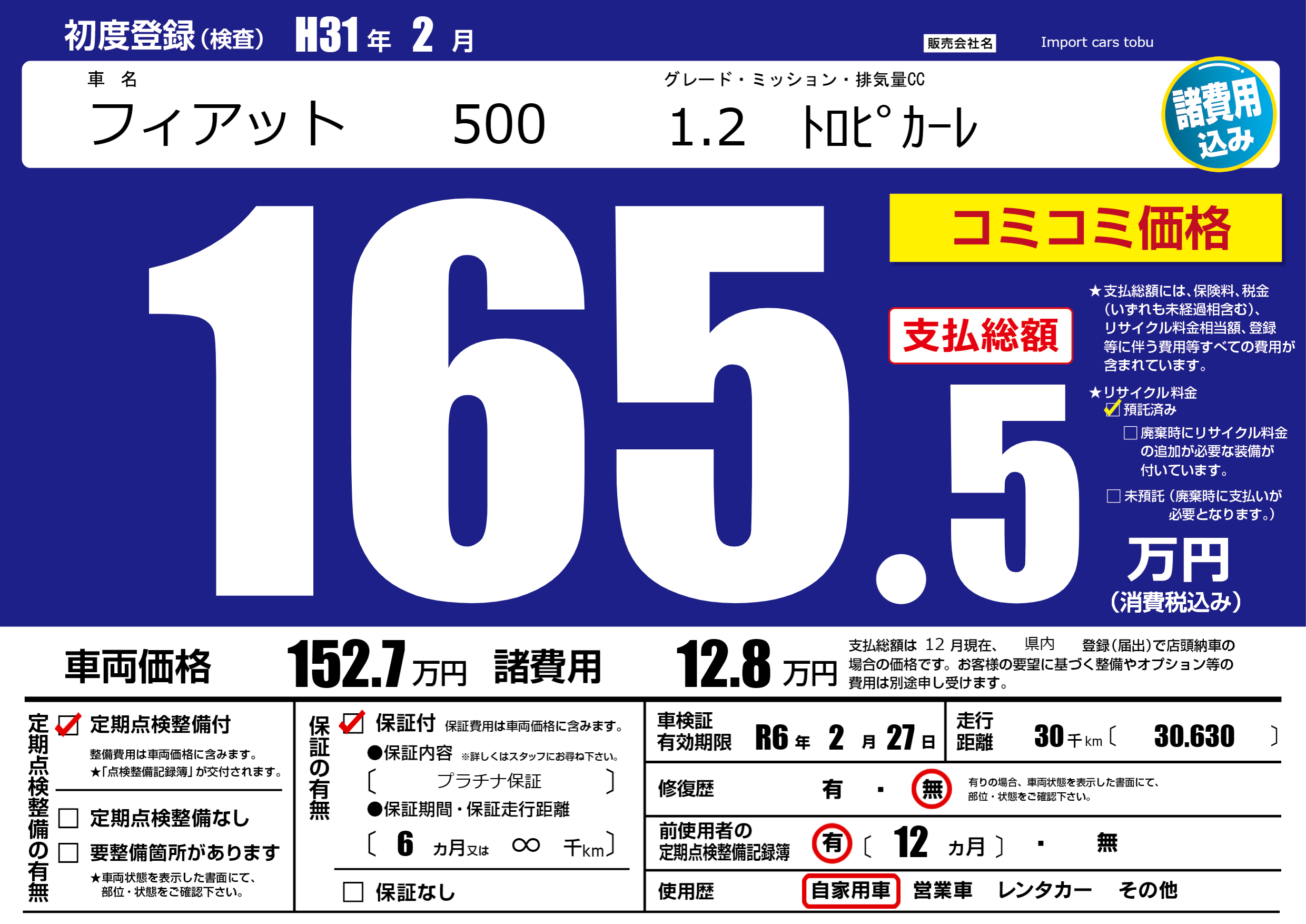 保証内容(   プラチナ保証) 6ヶ月または∞千km