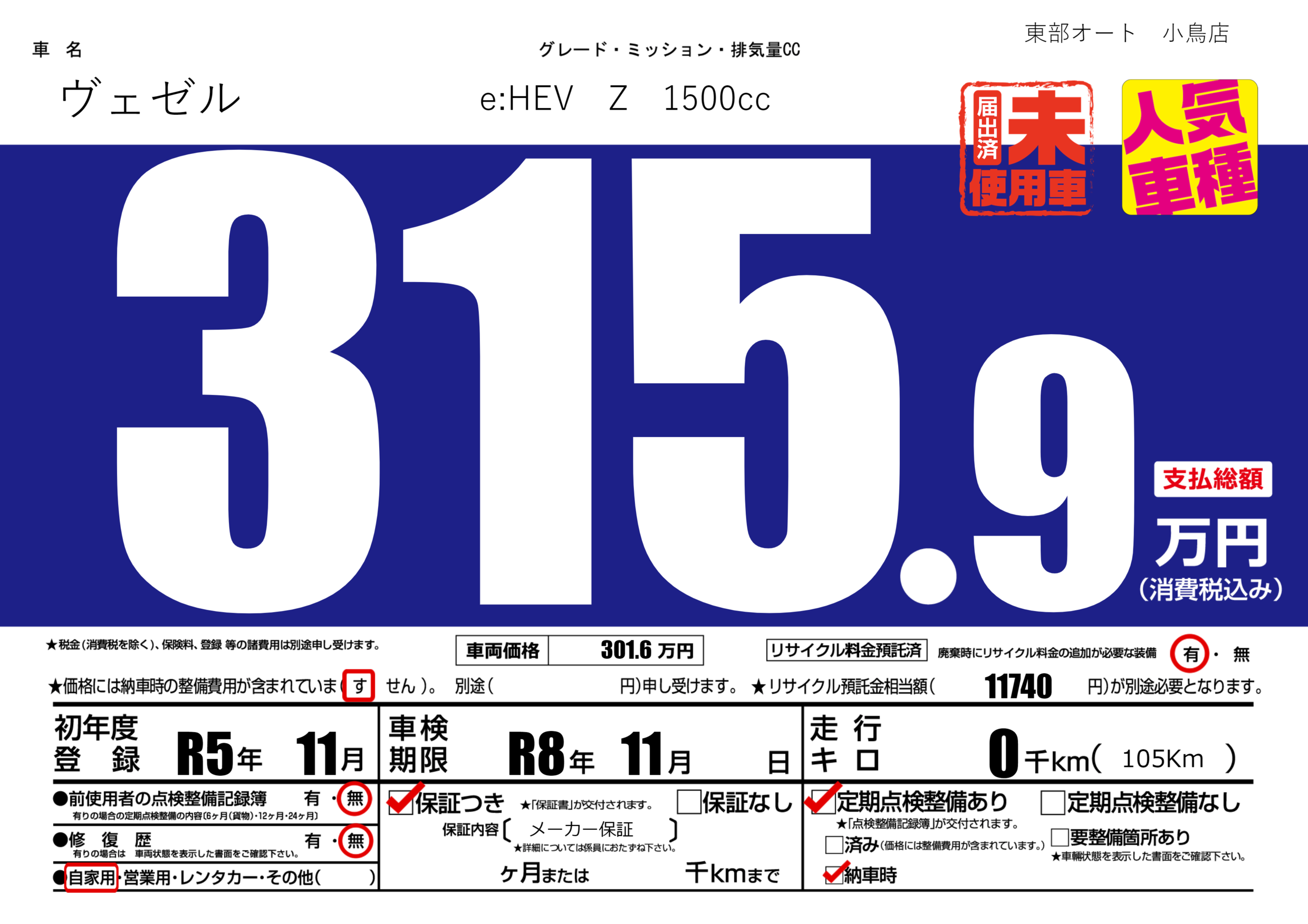 保証付き 保証内容( メーカー保証) ---ヶ月または()千kmまで |