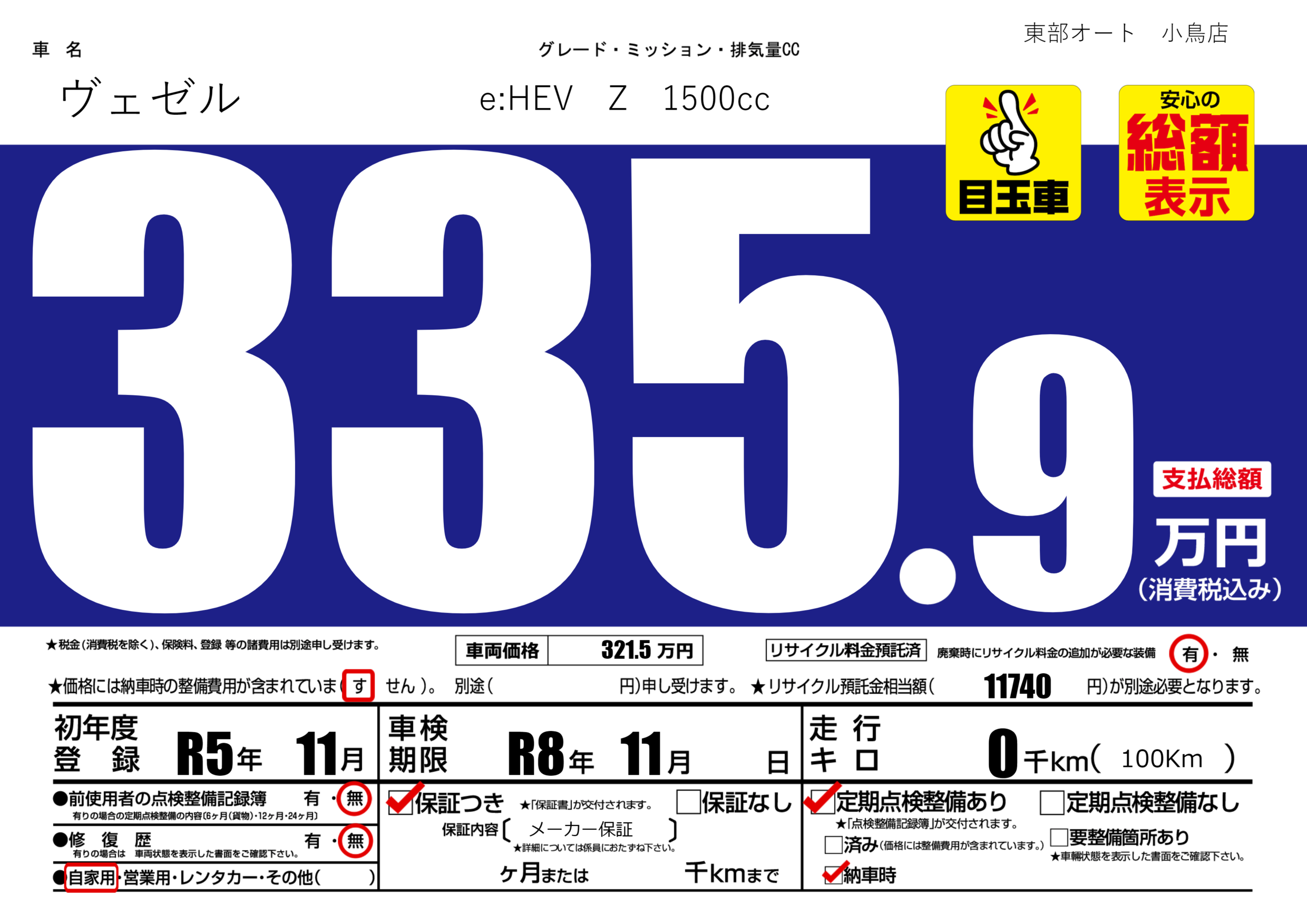 | 車名 | ヴェゼル | グレード ミッション 排気量 |