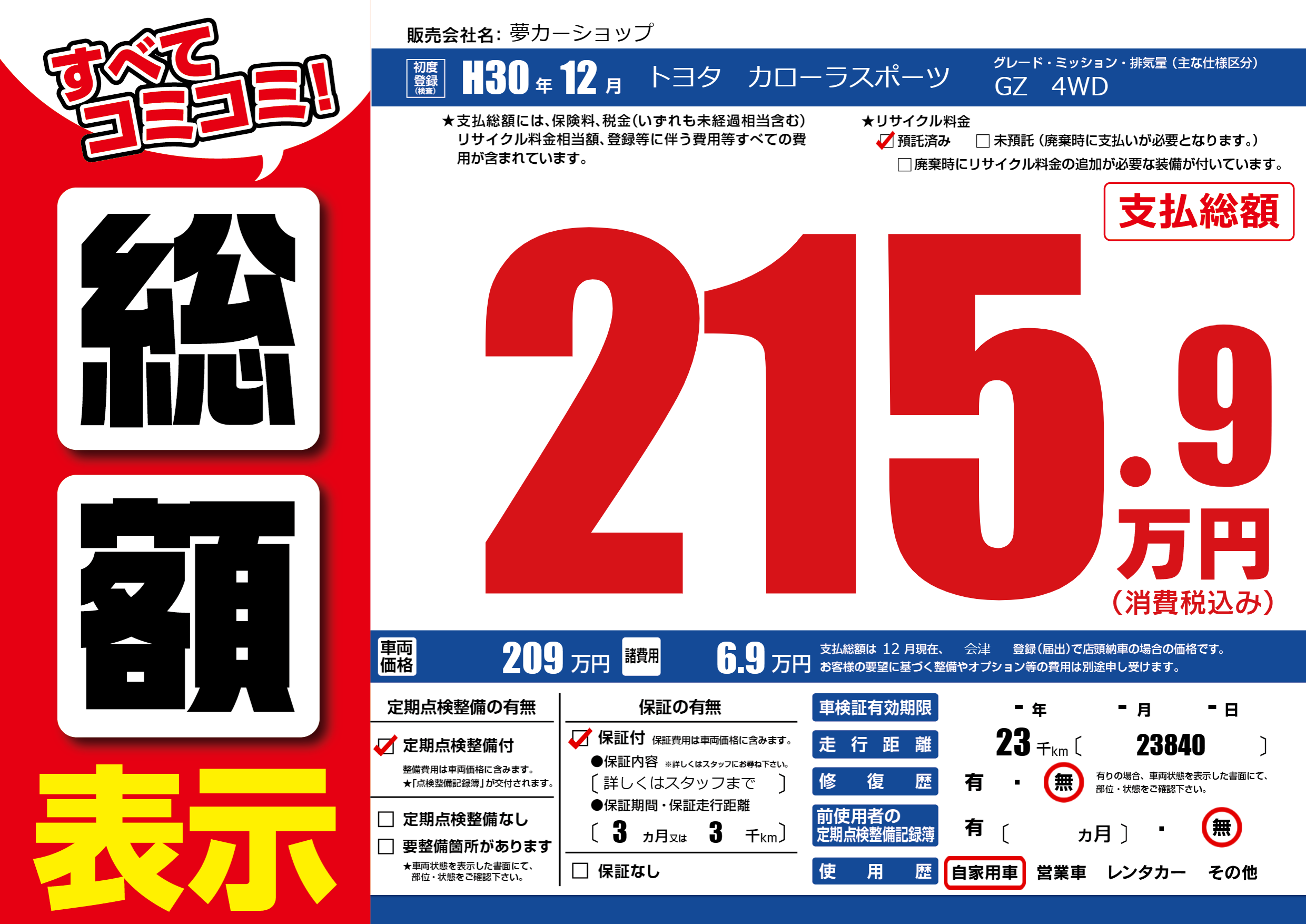 | 走行キロ | 2.3万km | ||