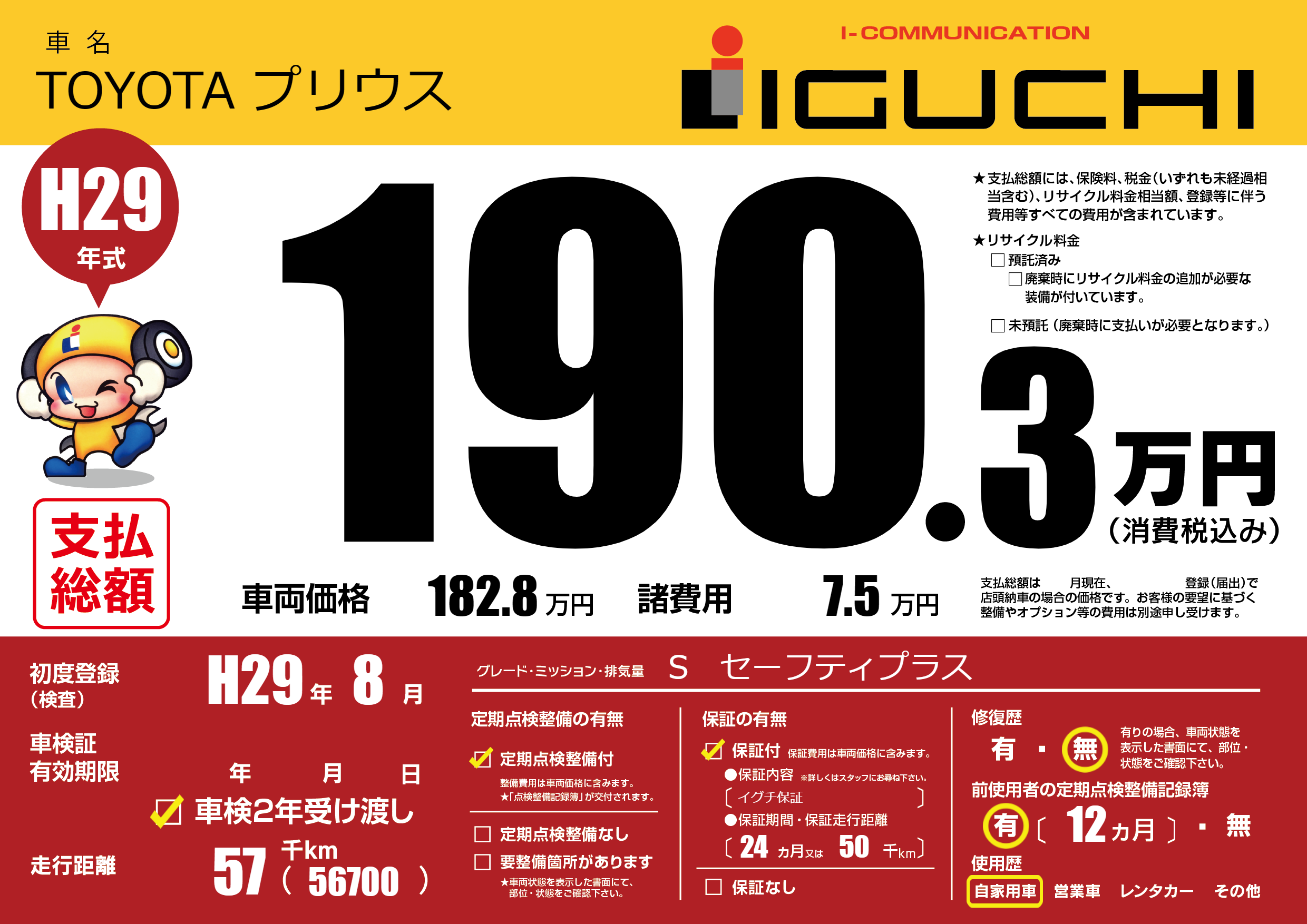 保証付き 保証内容(イグチ保証) 24ヶ月または(50)千kmまで |
