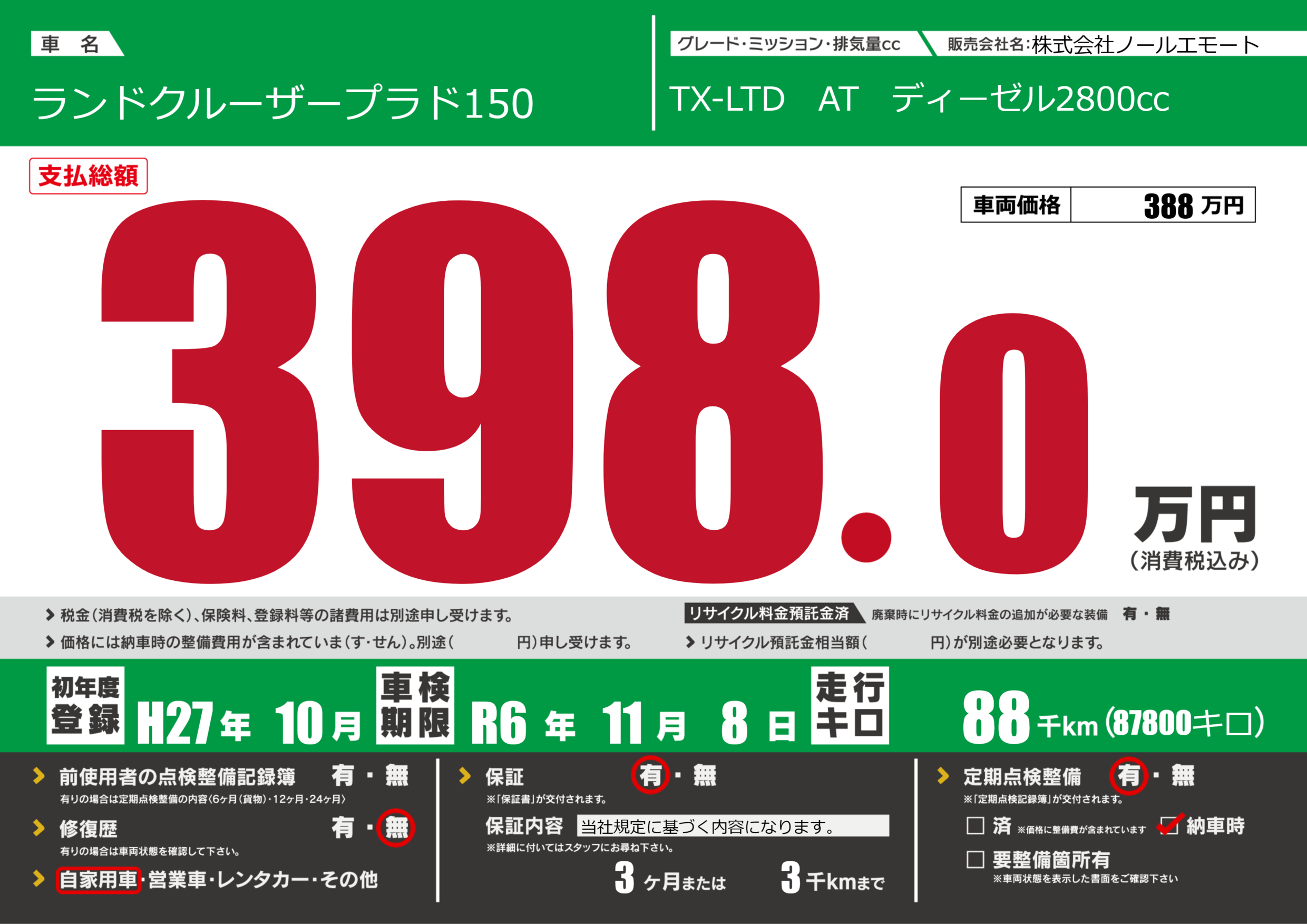 | 車名 | ランドクルーザープラド150 | グレード ミッション 排気量 |