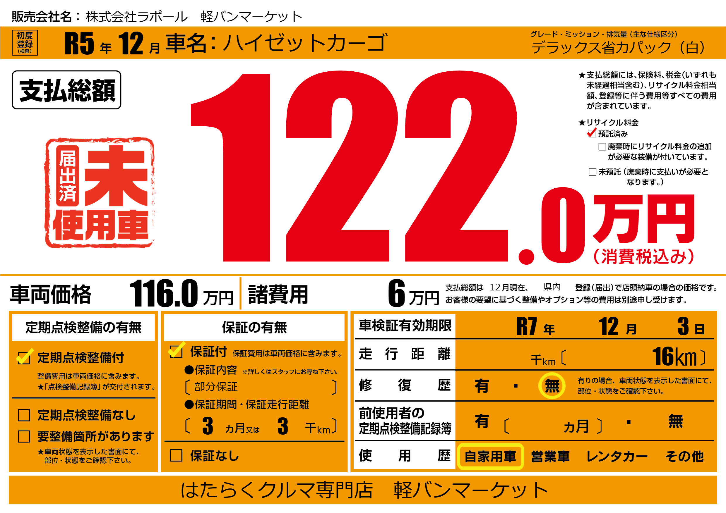 | 車検制限 | R7年 12月 3日 | ||