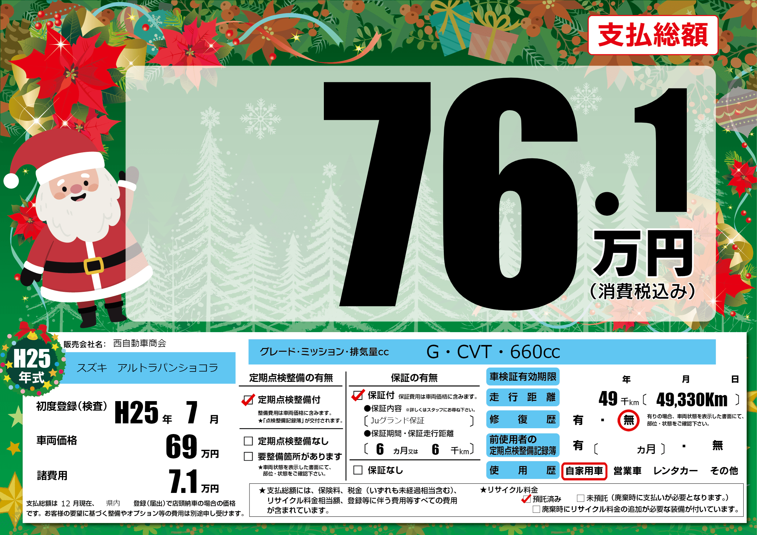 | 走行キロ | 4.9万km | 初年度登録 | H25年7月 |