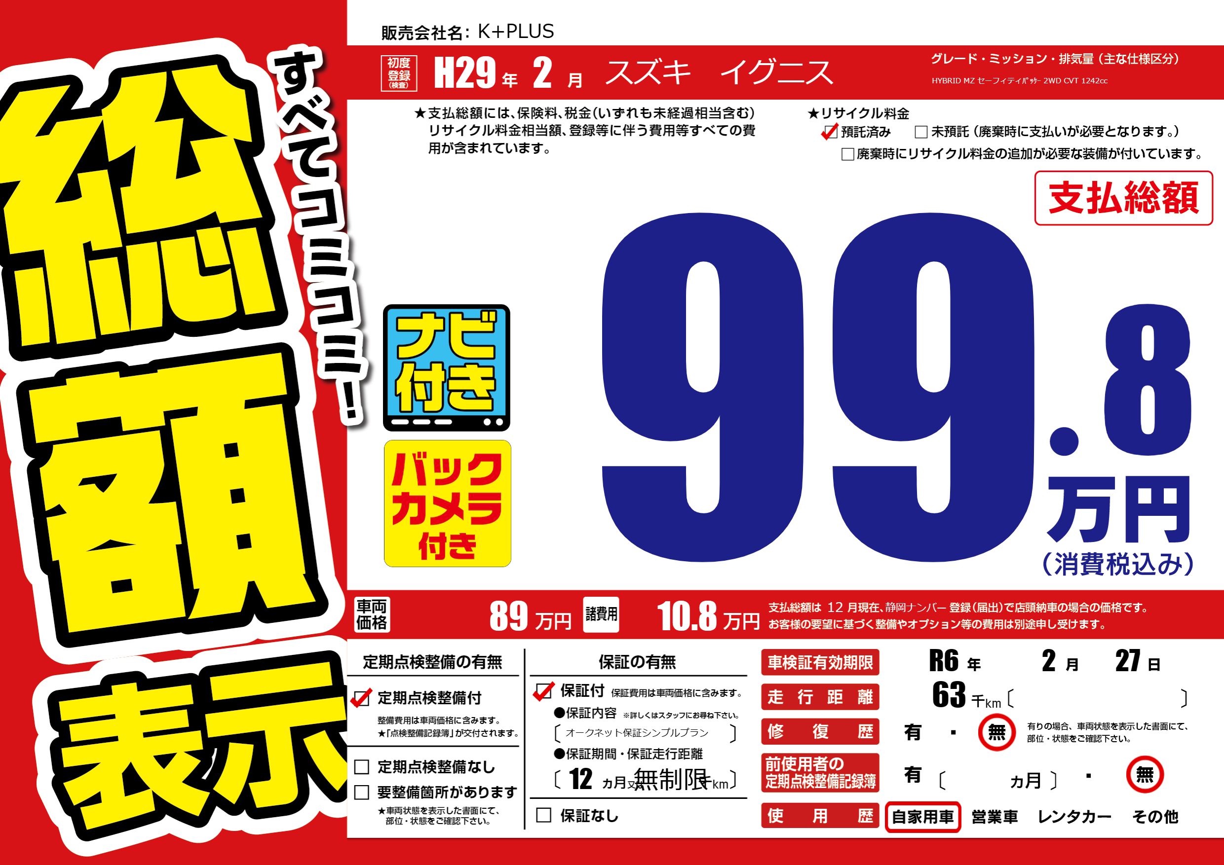 なし | 車検制限 | R6年2月27月 |