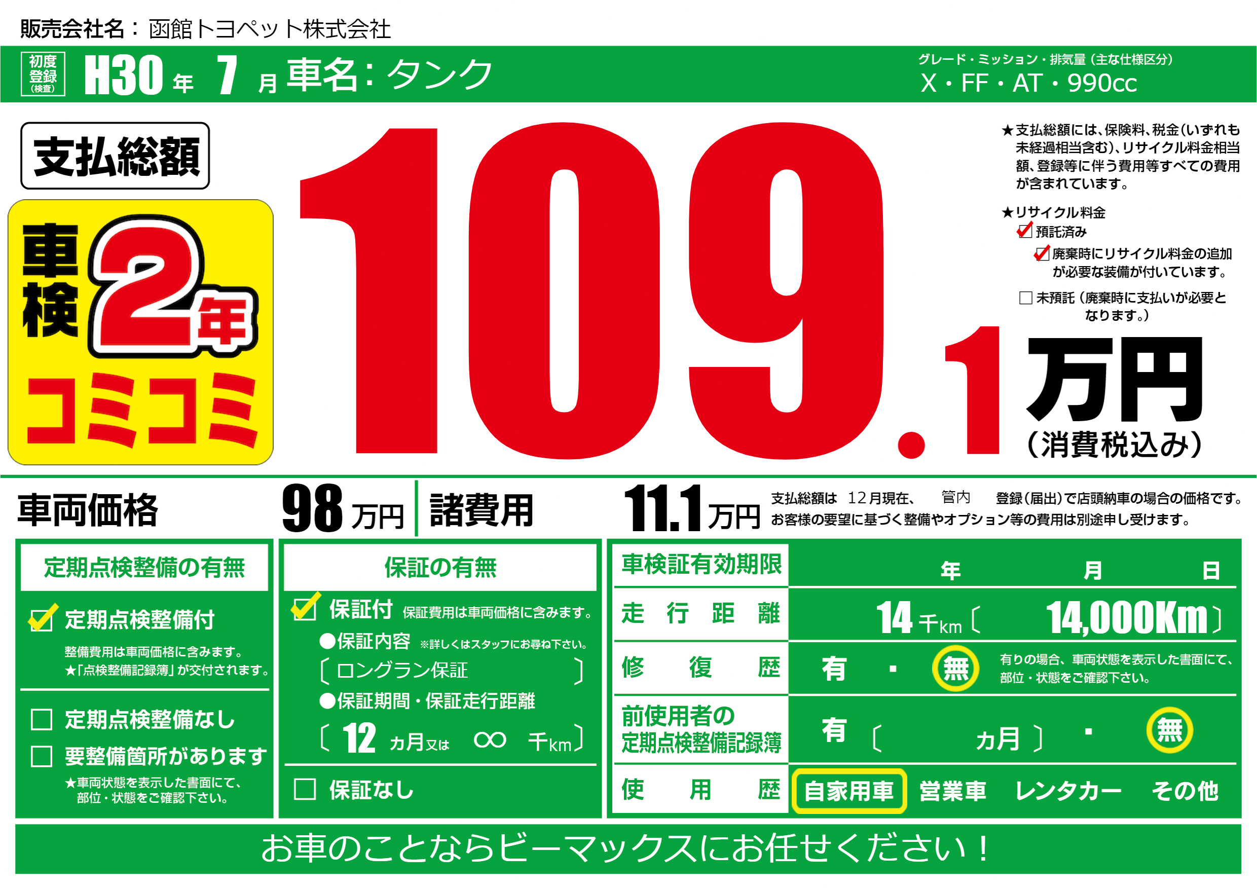 | 定期点検整備 | 定期点検整備あり | ||
