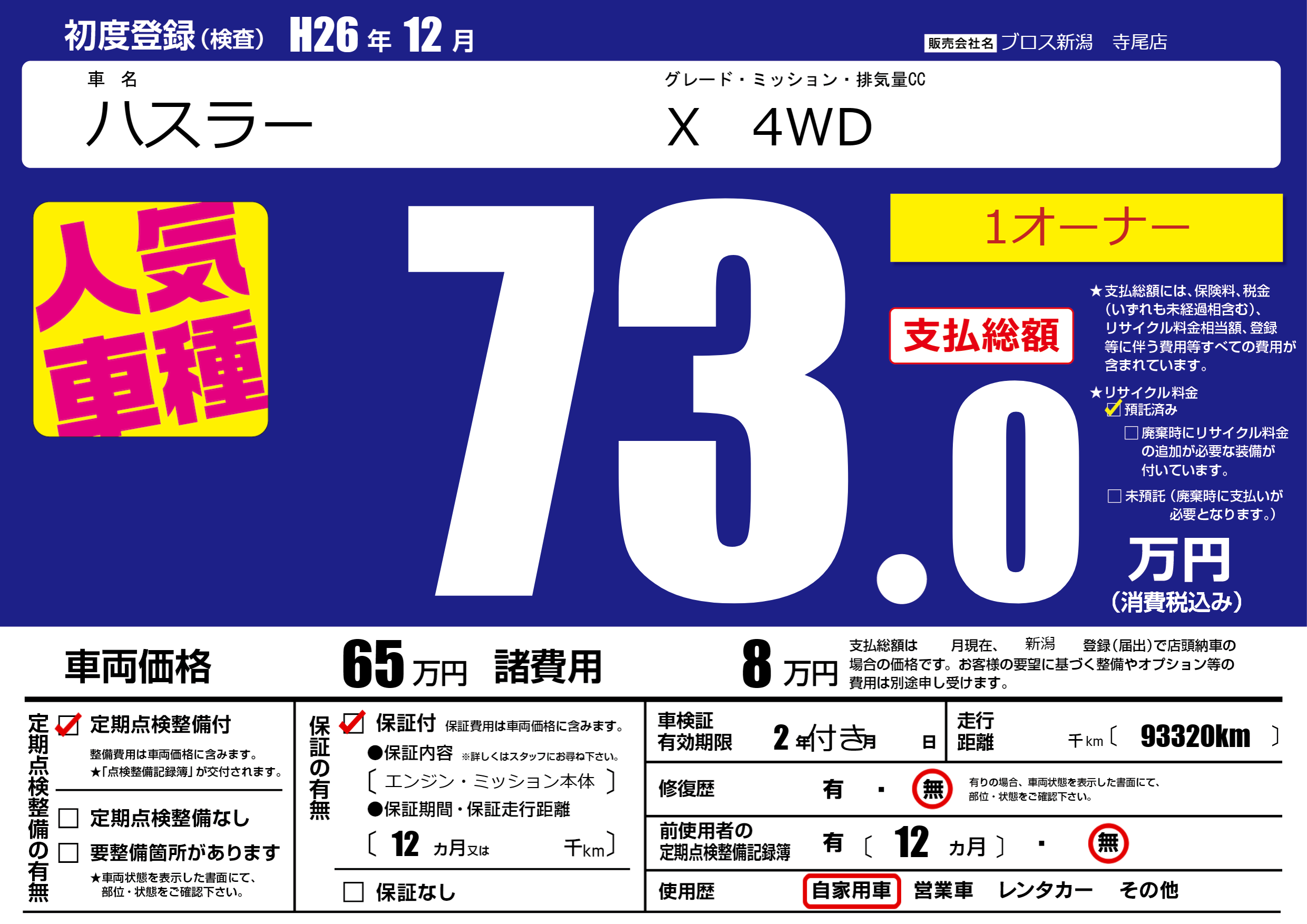 | 車名 | ハスラー | グレード ミッション 排気量 |