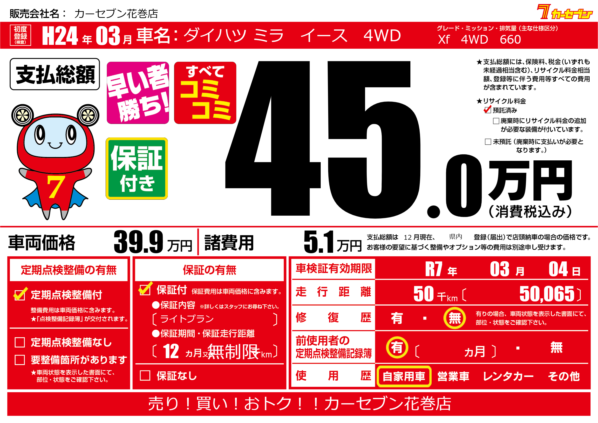 | 車検制限 | R7年 03月 04日 | ||