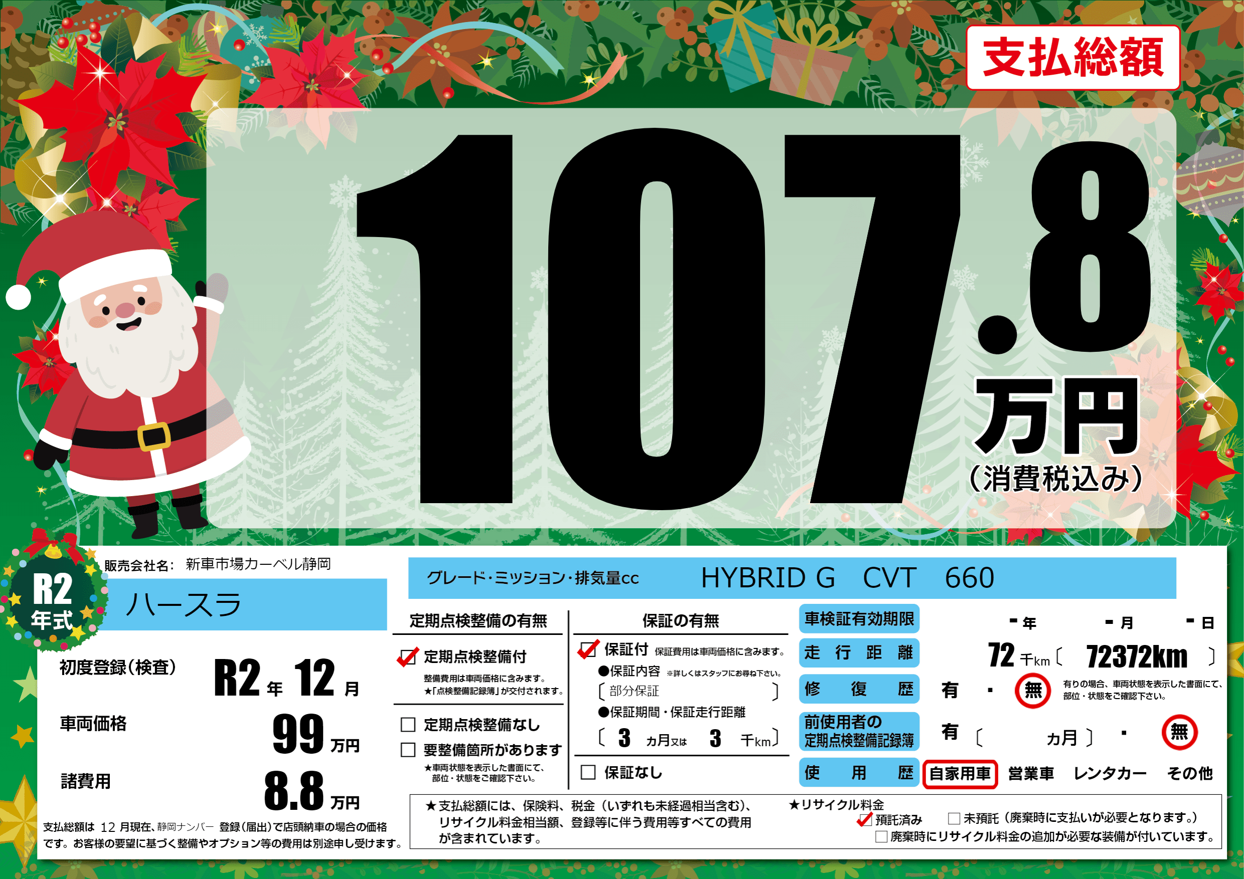 | 初年度登録 | R2年12月 | ||