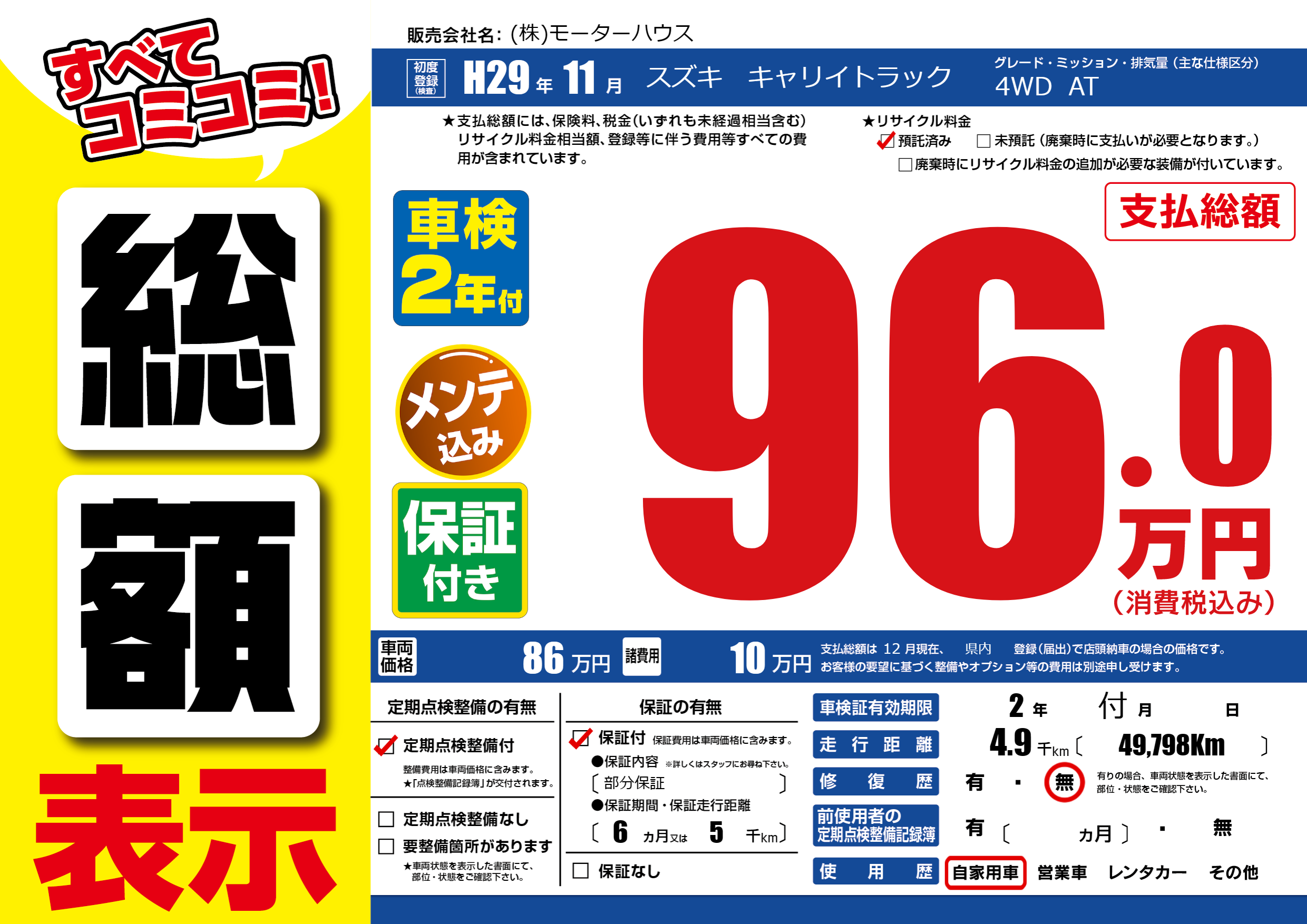 保証なし 保証内容(部分保証) 6ヶ月または(5)千kmまで |