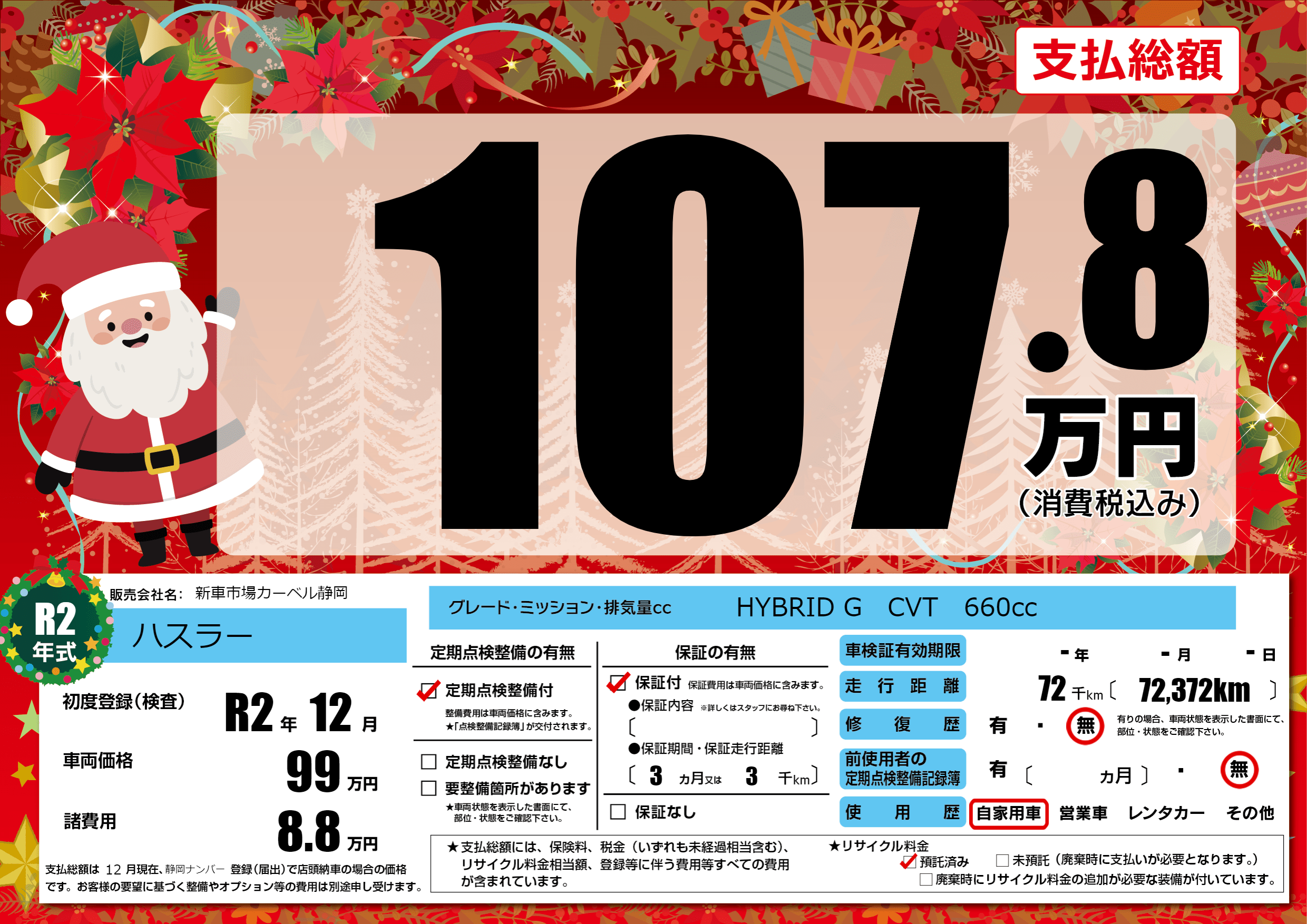 | 走行キロ | 7.2万km | 初年度登録 | R2年12月 |