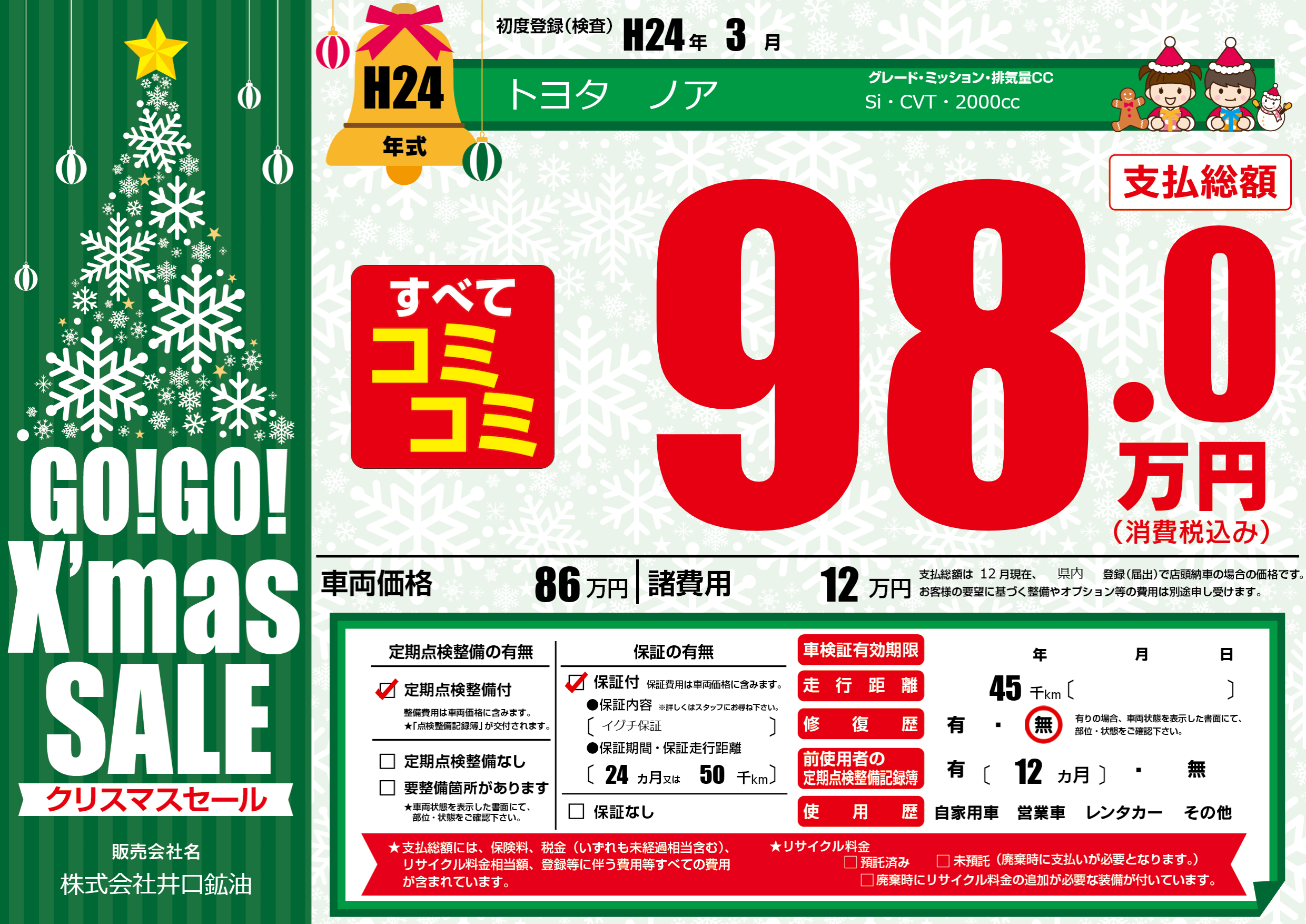 保証付き 保証内容(イグチ保証) 24ヶ月または(50)千kmまで |