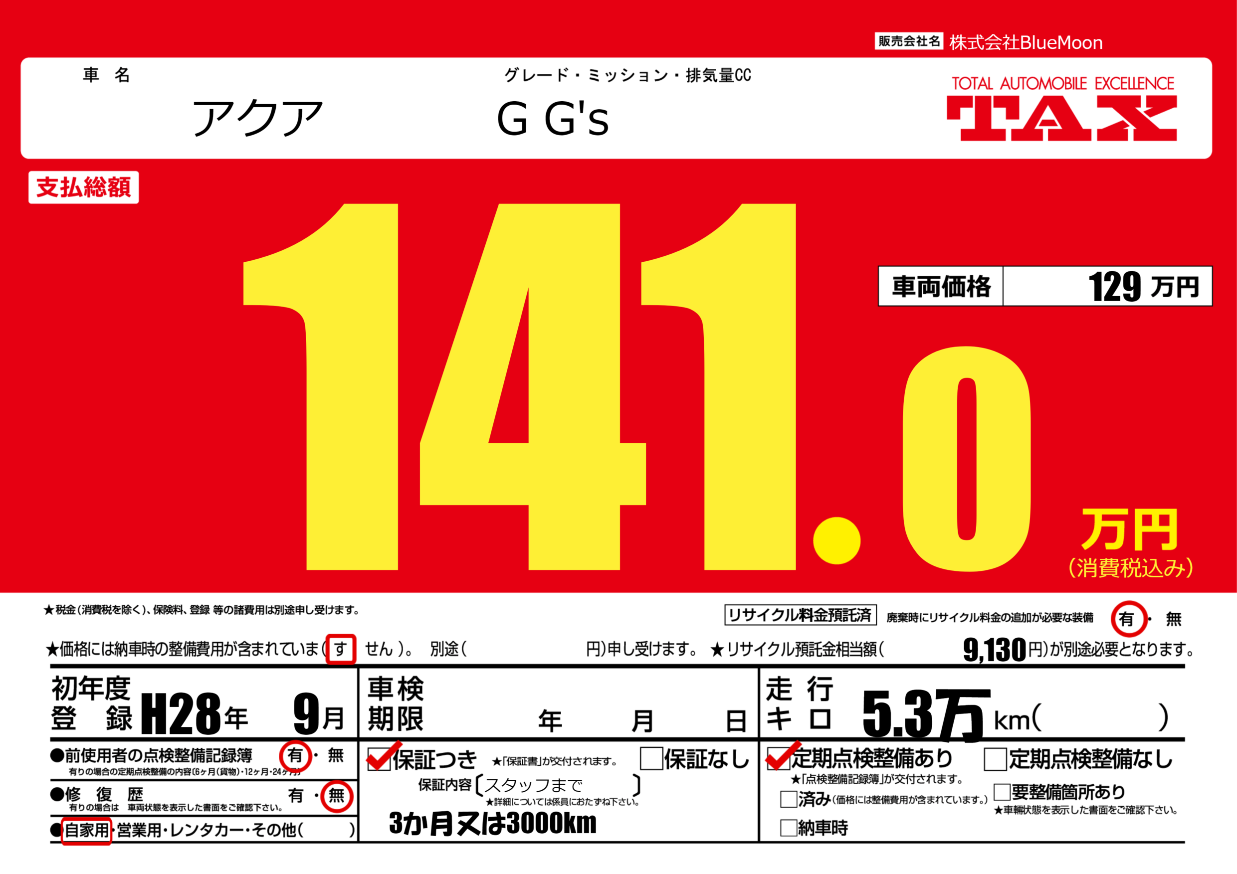 保証付き 保証内容(スタッフまで) ヶ月または千km |