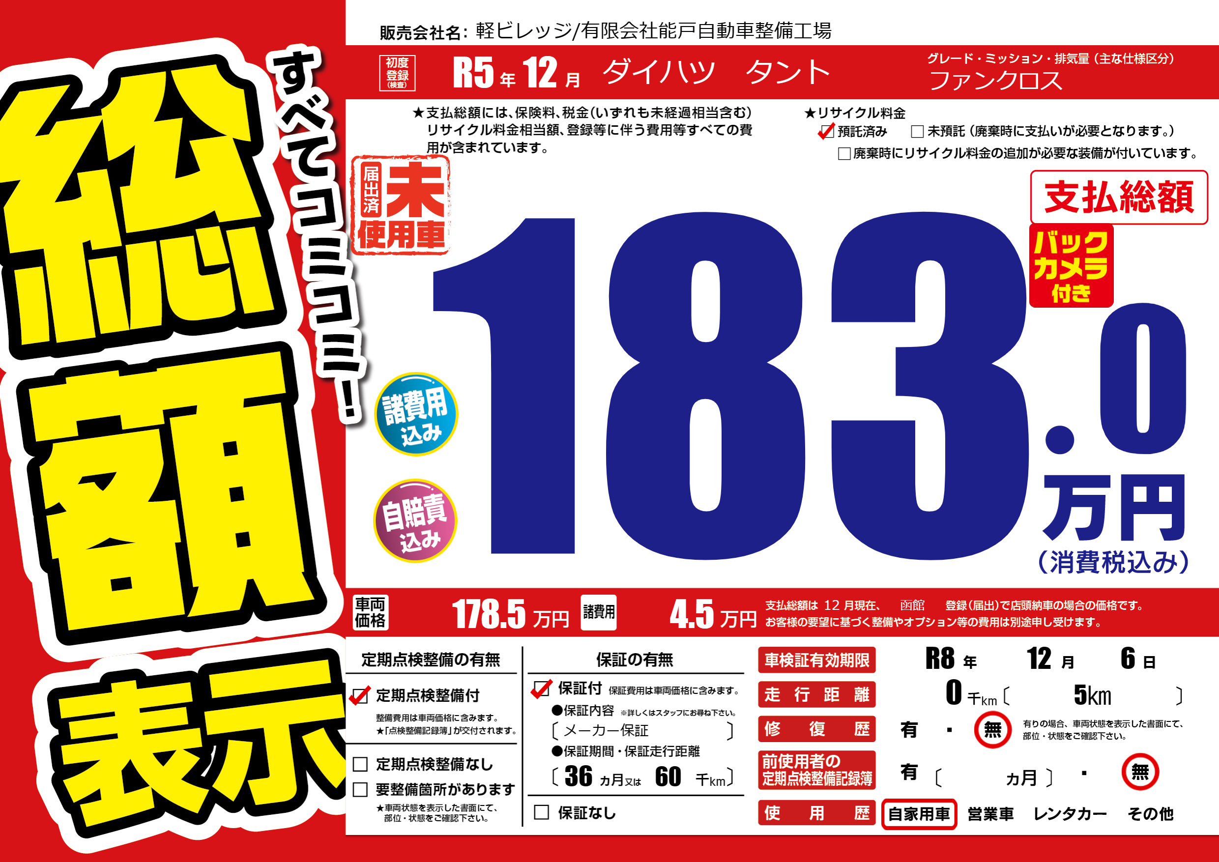 | 走行キロ | - | 初年度登録 | R5年12月 |