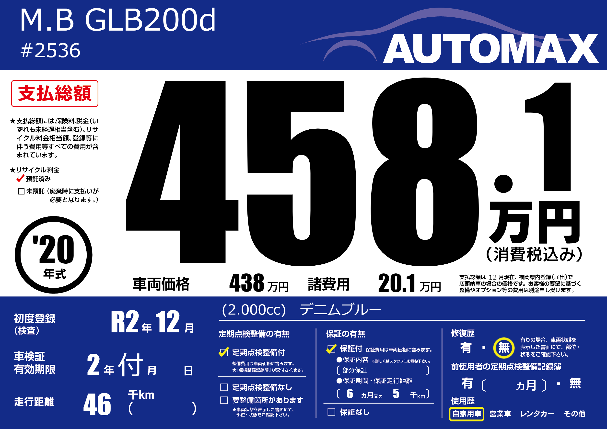 なし | 車検制限 | 2年付月---月 |