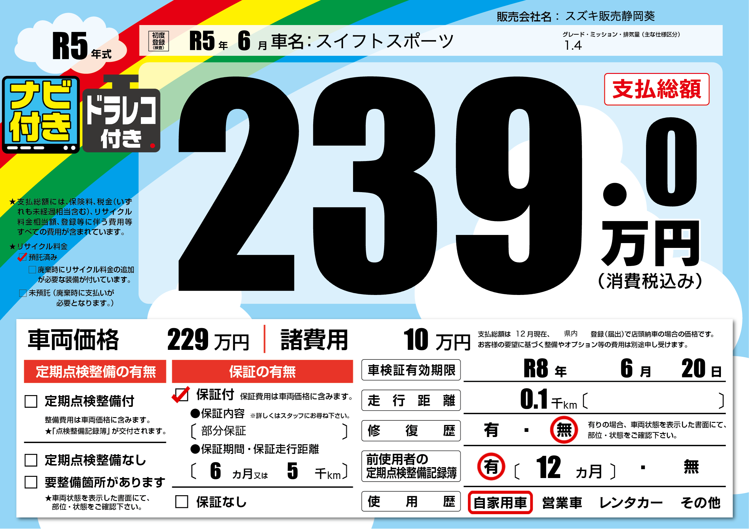 | 走行キロ | - | 初年度登録 | R5年6月 |