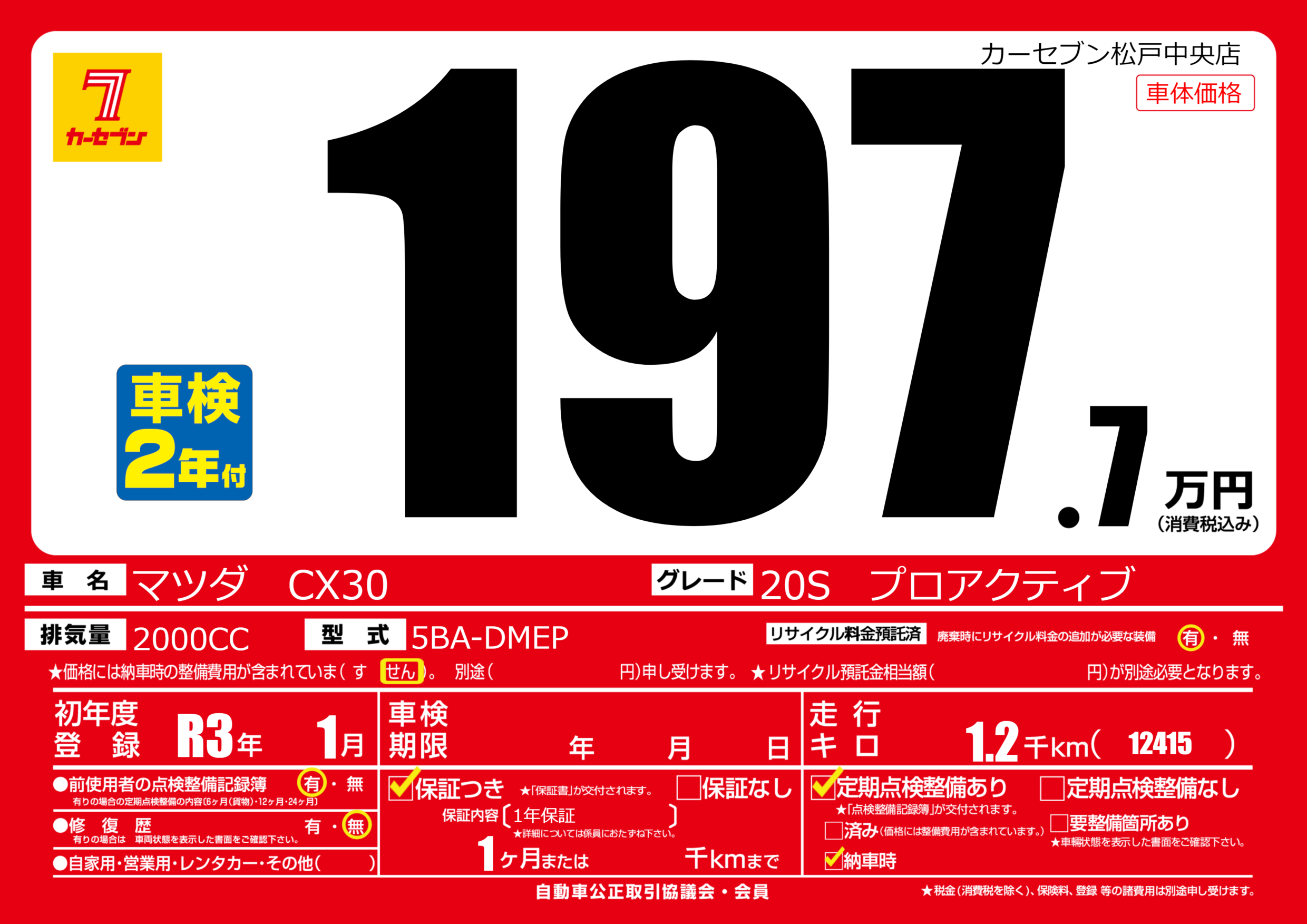 | 車名 | マツダ CX30 | グレード ミッション 排気量 |