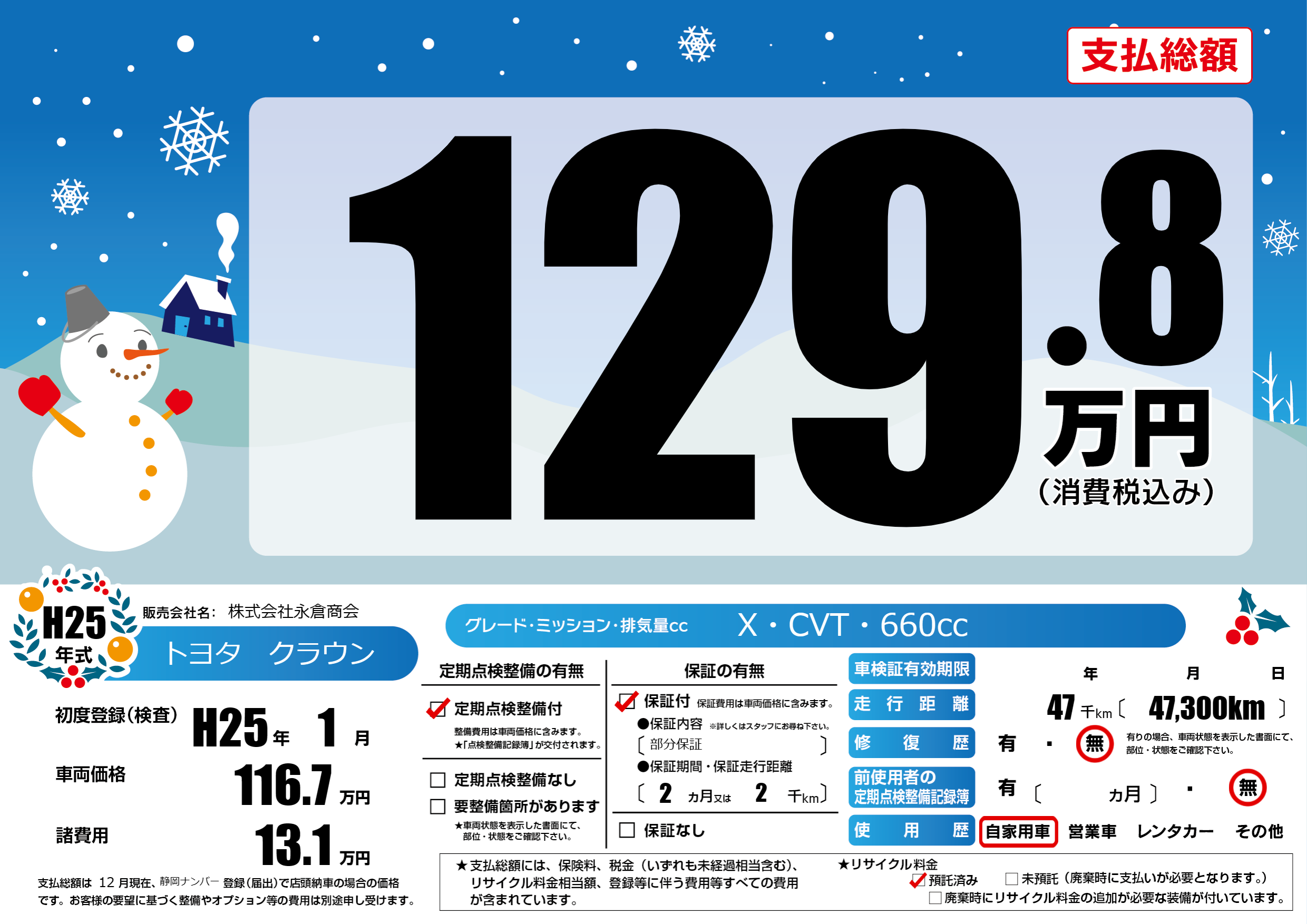 | 走行キロ | 4.7万km | 初年度登録 | H25年1月 |