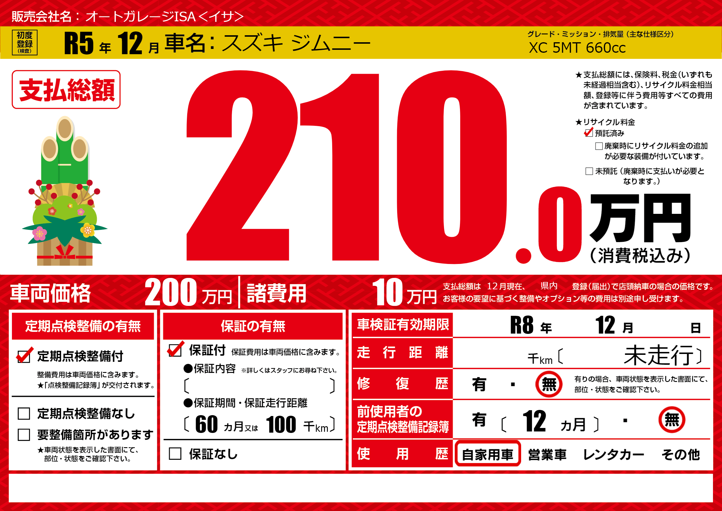 なし | 車検制限 | R8年12月---月 |