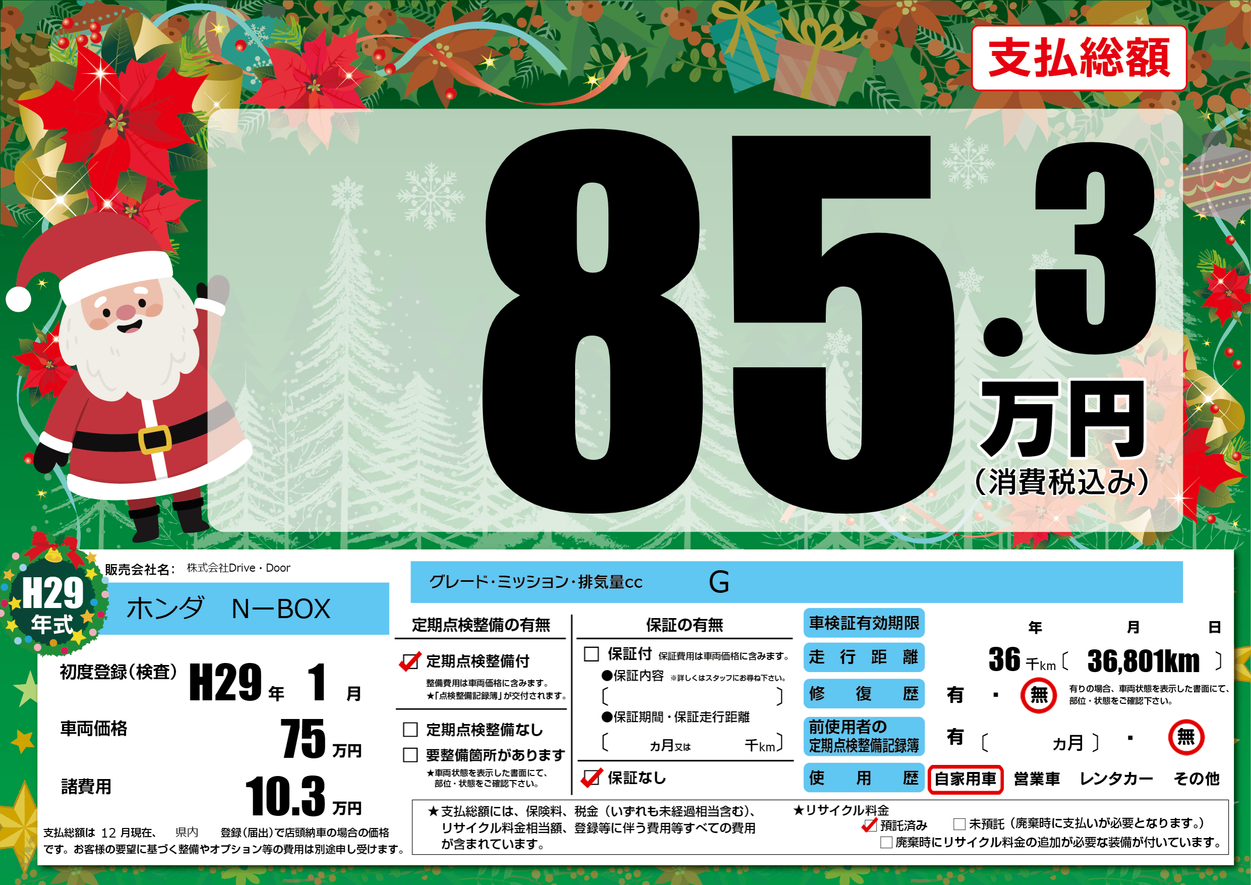 | 定期点検整備 | 定期点検整備あり | ||