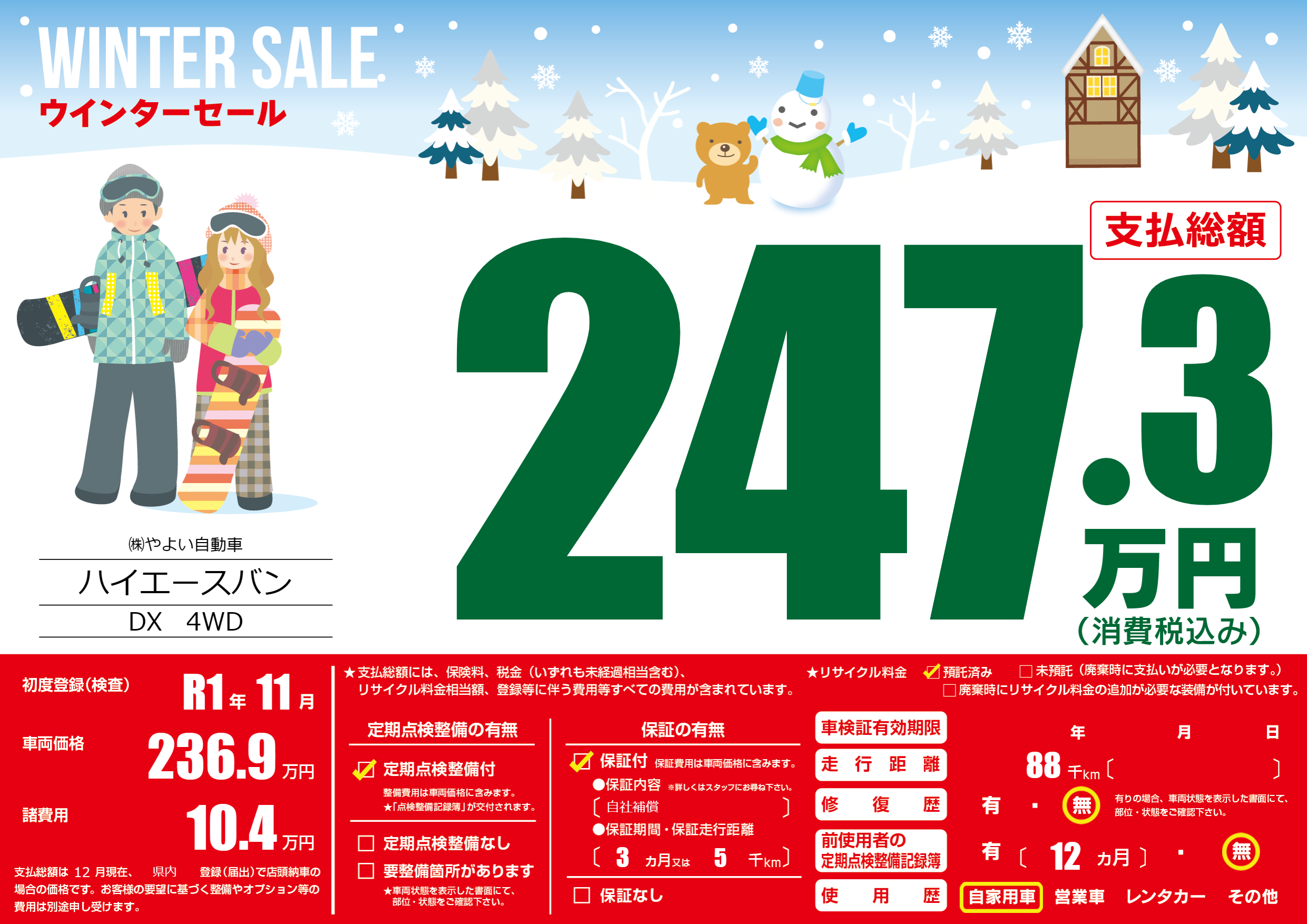保証付き 保証内容(自社補償) 3ヶ月または(5)千kmまで |