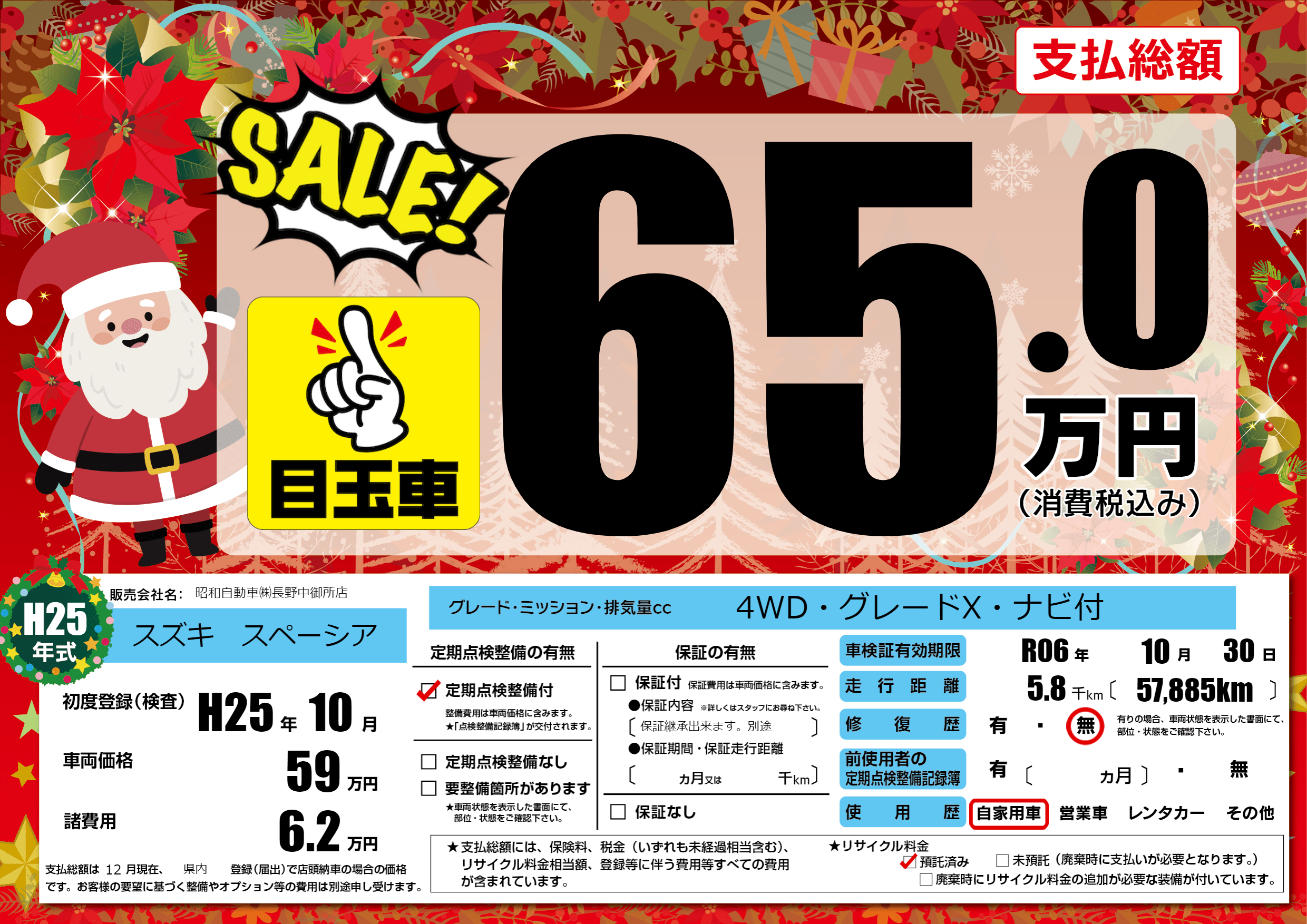 | 走行キロ | 0.5万km | 初年度登録 | H25年10月 |