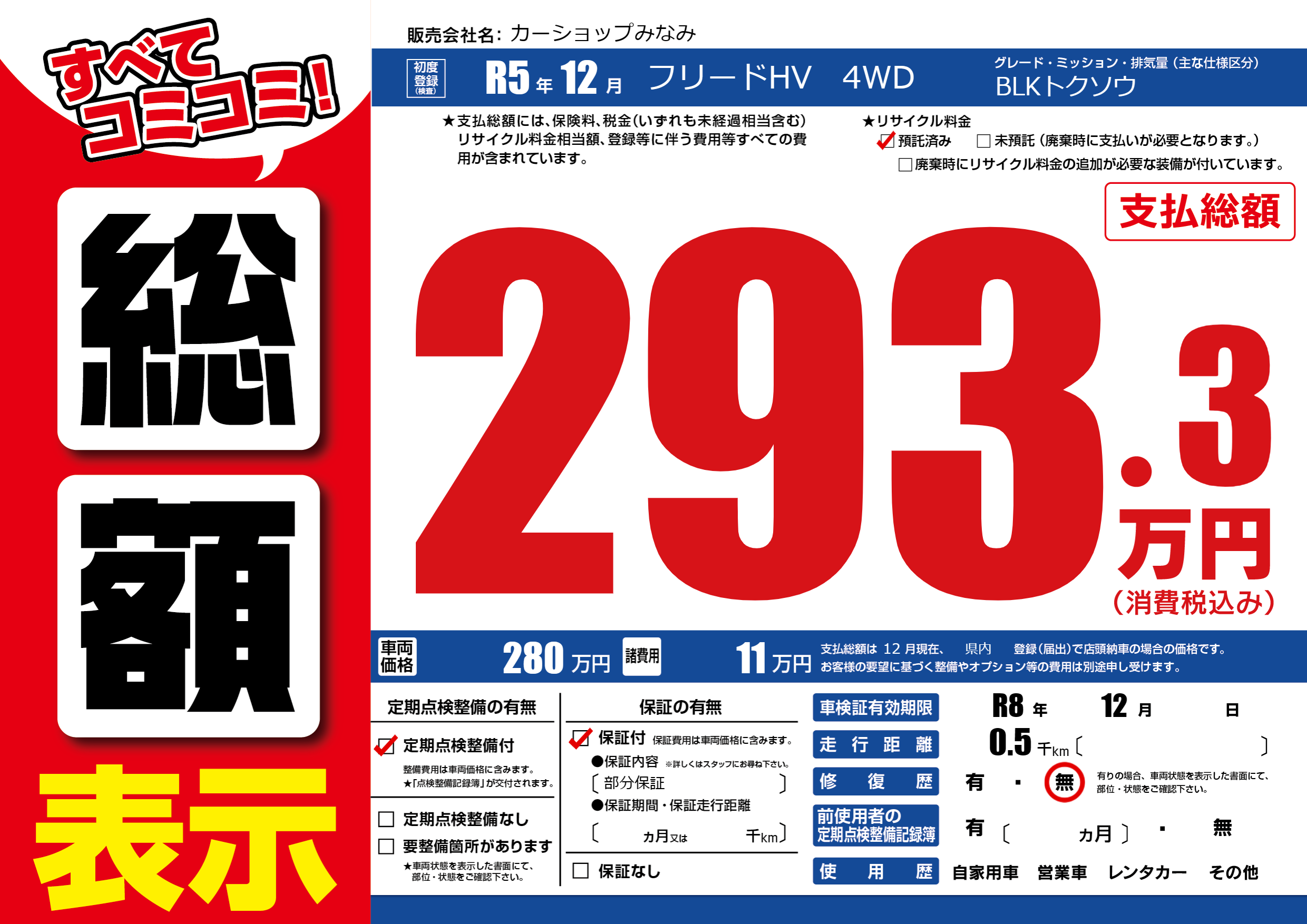 | 走行キロ | - | 初年度登録 | R5年12月 |
