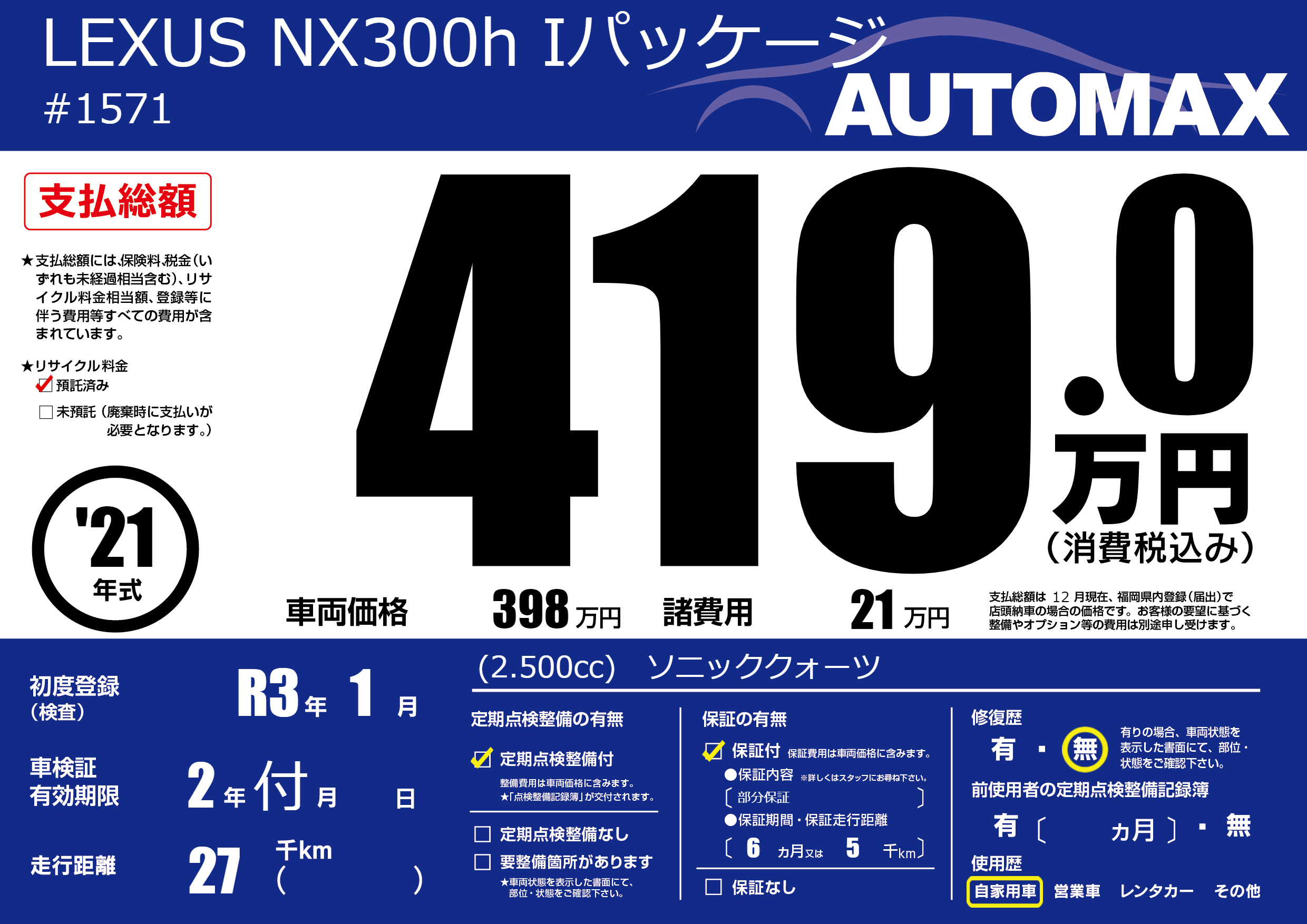 | 定期点検整備 | 定期点検整備あり | ||