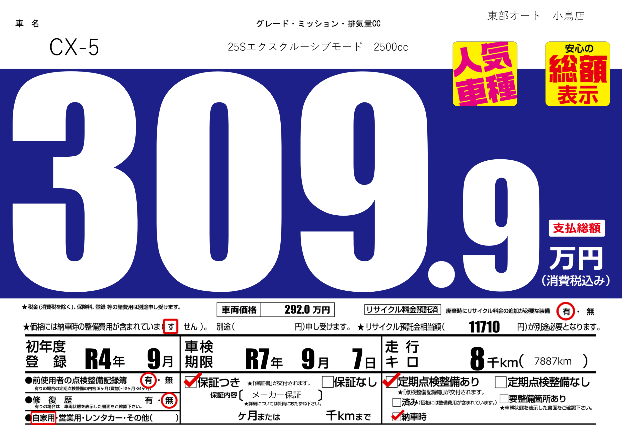 | 車検制限 | R7年 9月 7日 | ||