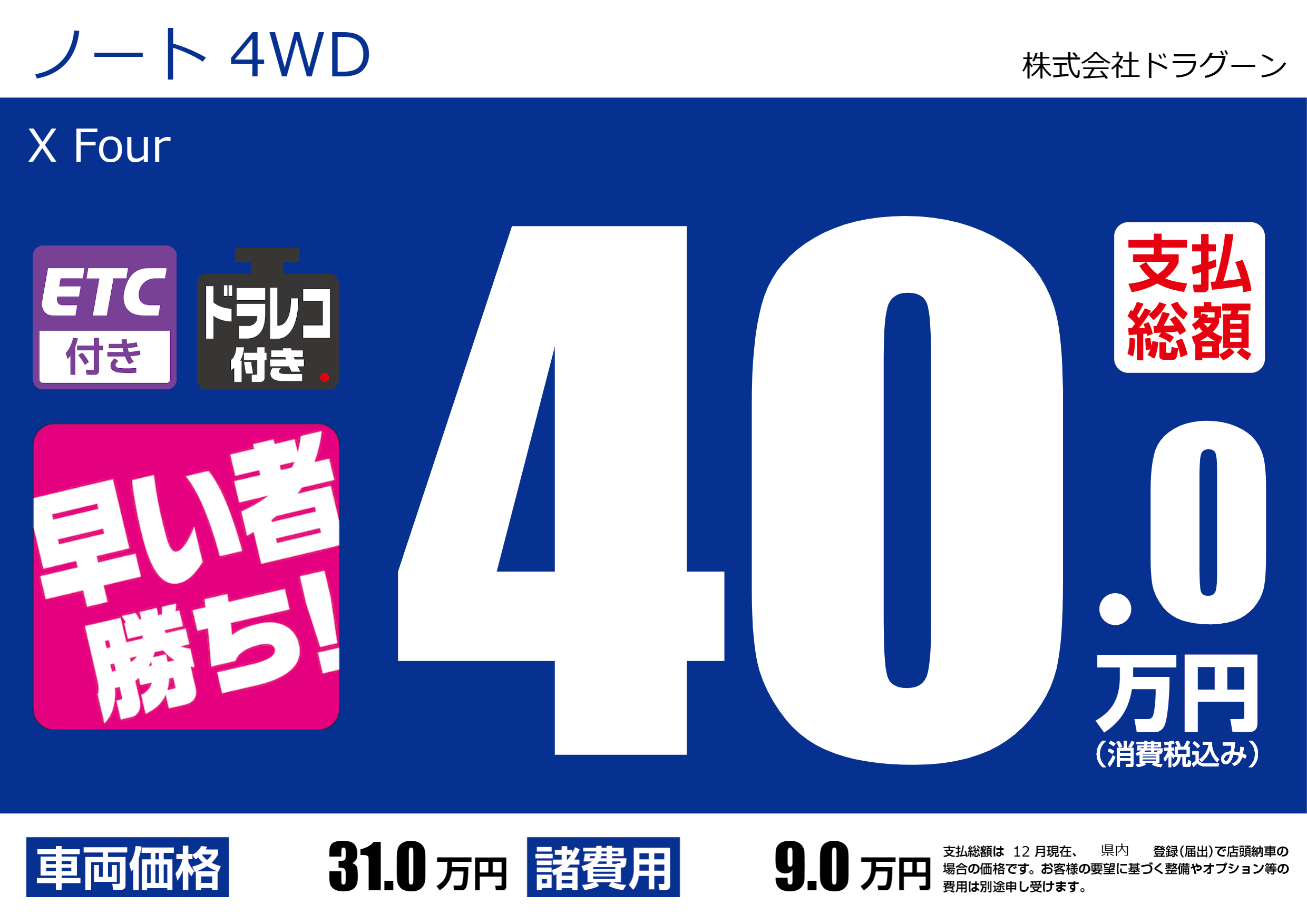 | 車名 | ノート 4WD | グレード ミッション 排気量 |