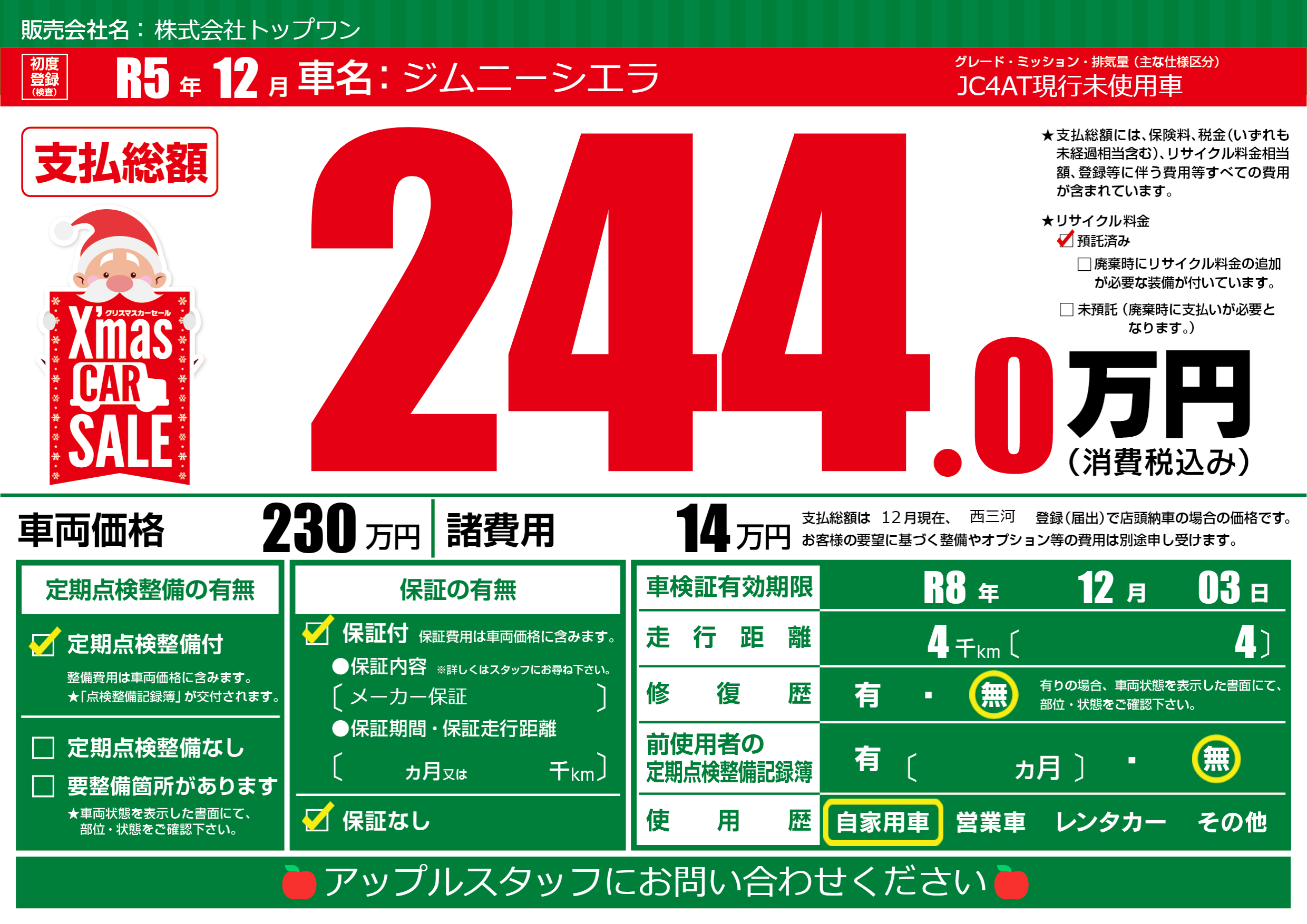 なし | 車検制限 | R8年12月03月 |