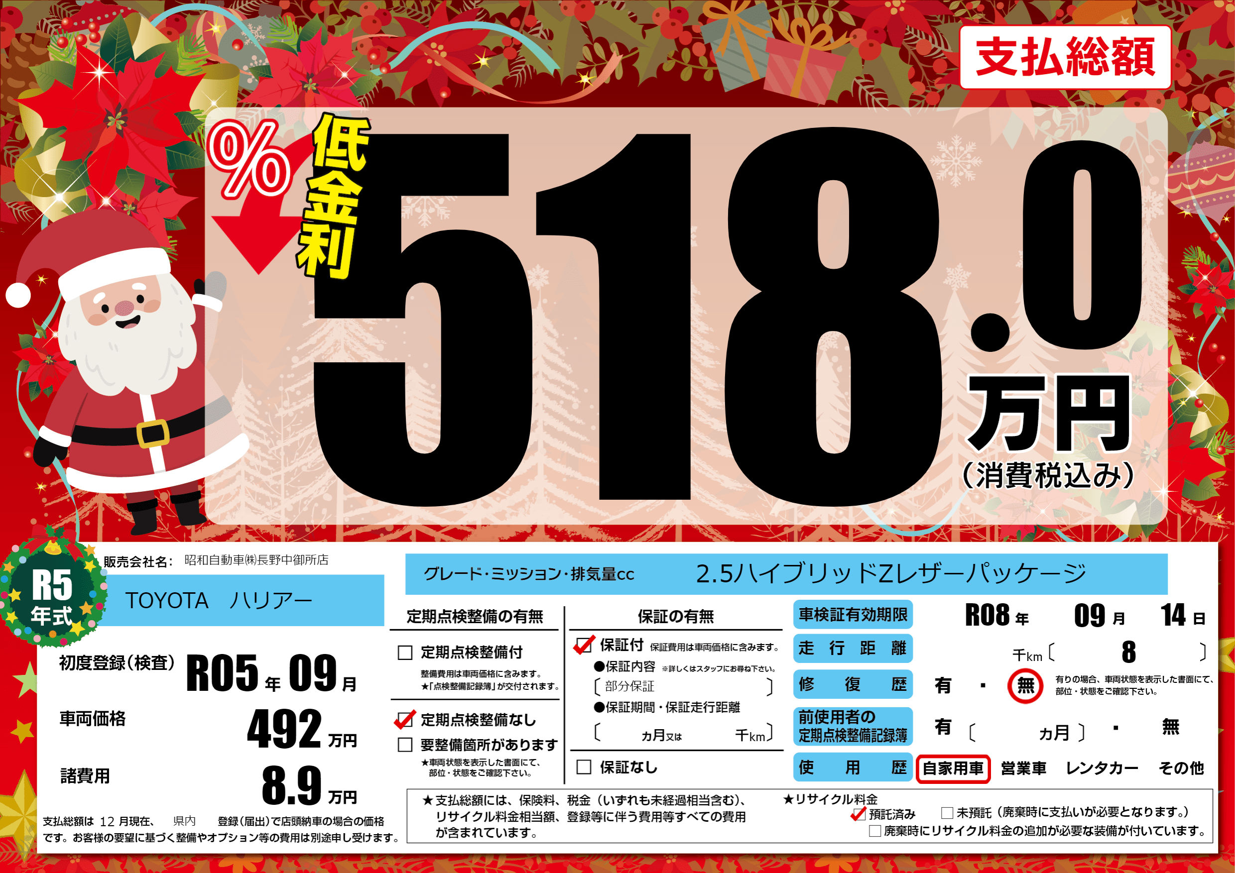 | 走行キロ | - | 初年度登録 | R05年09月 |