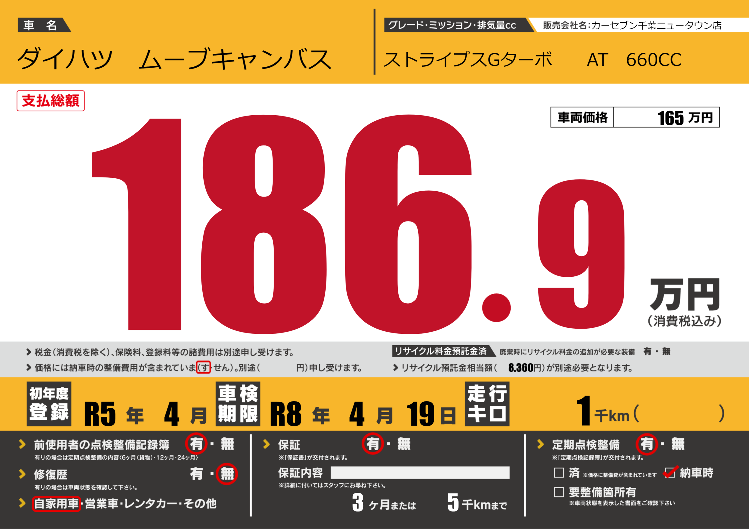 | 走行キロ | 0.1万km | 初年度登録 | R5年4月 |