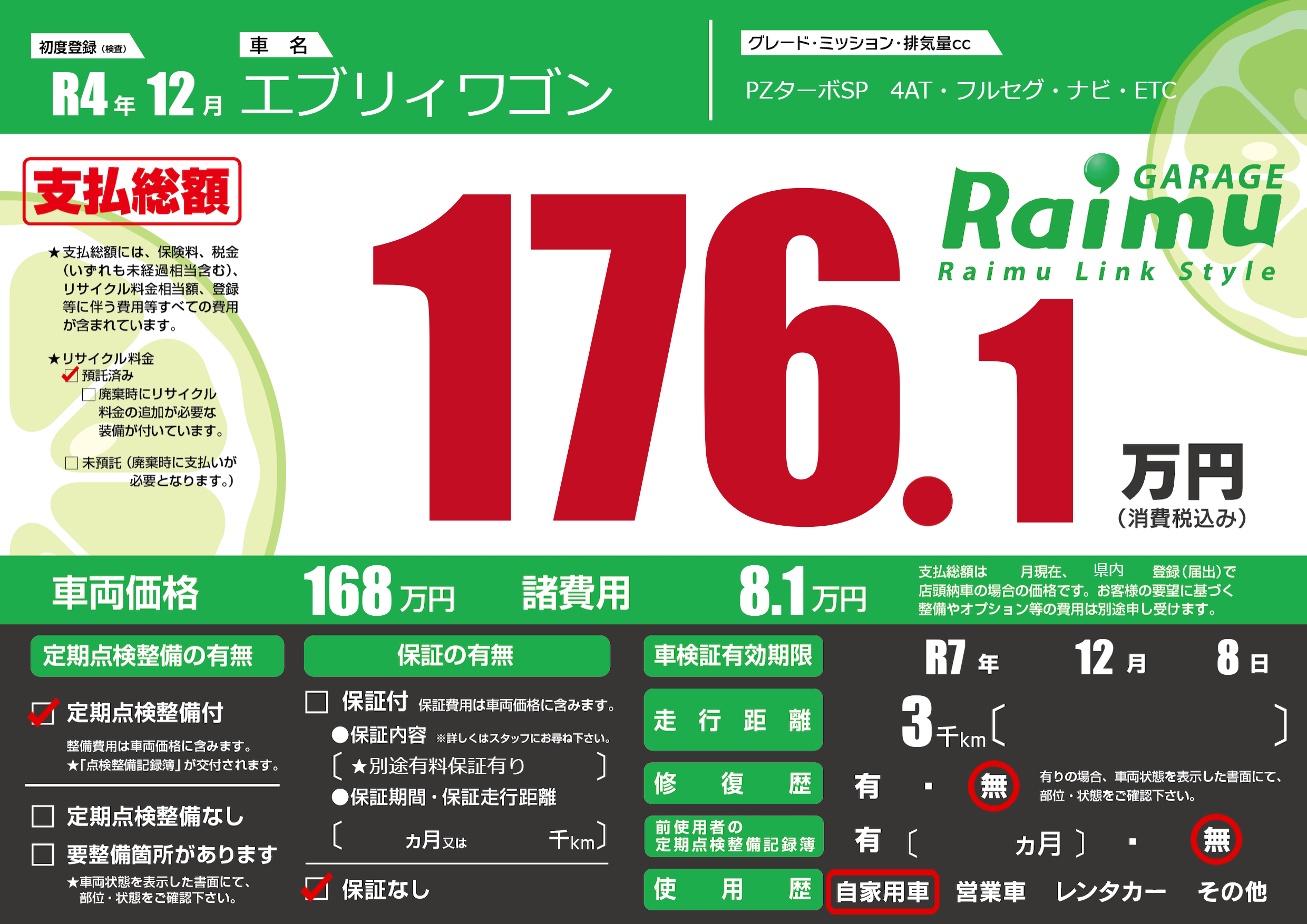 なし | 車検制限 | R7年12月8月 |