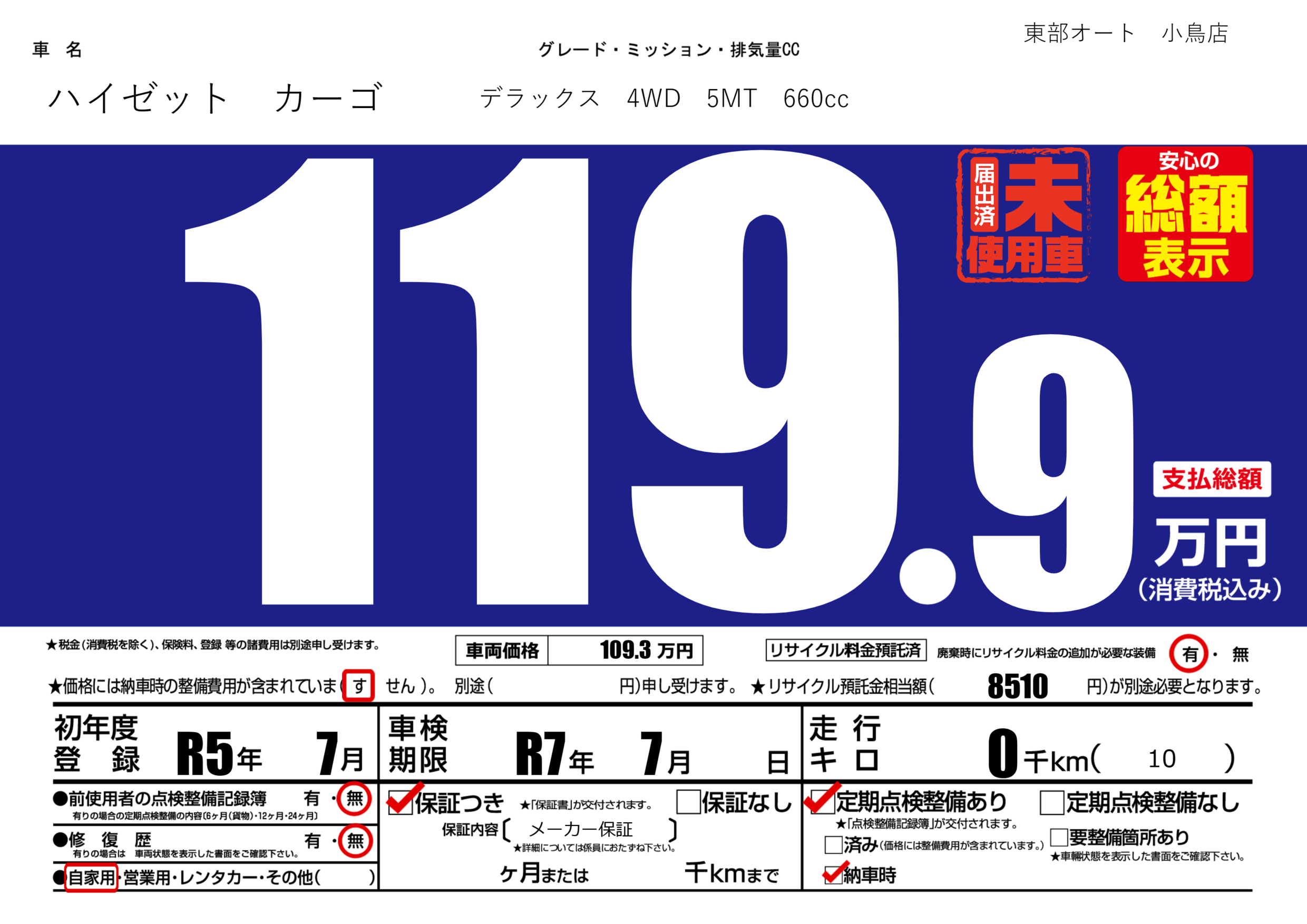 | 車名 | ハイゼット カーゴ | グレード ミッション 排気量 |