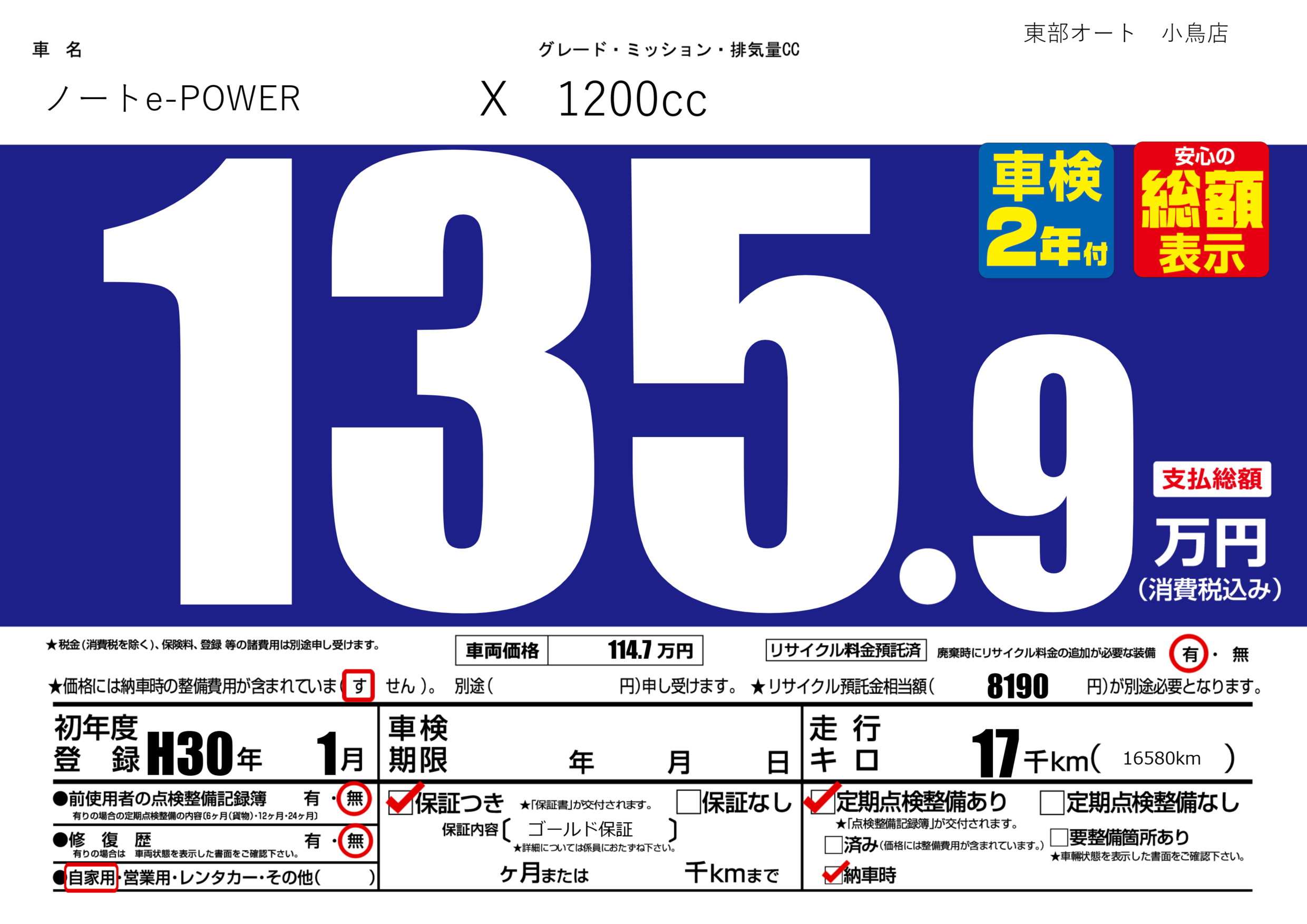 保証付き 保証内容( ゴールド保証) ヶ月または千km |