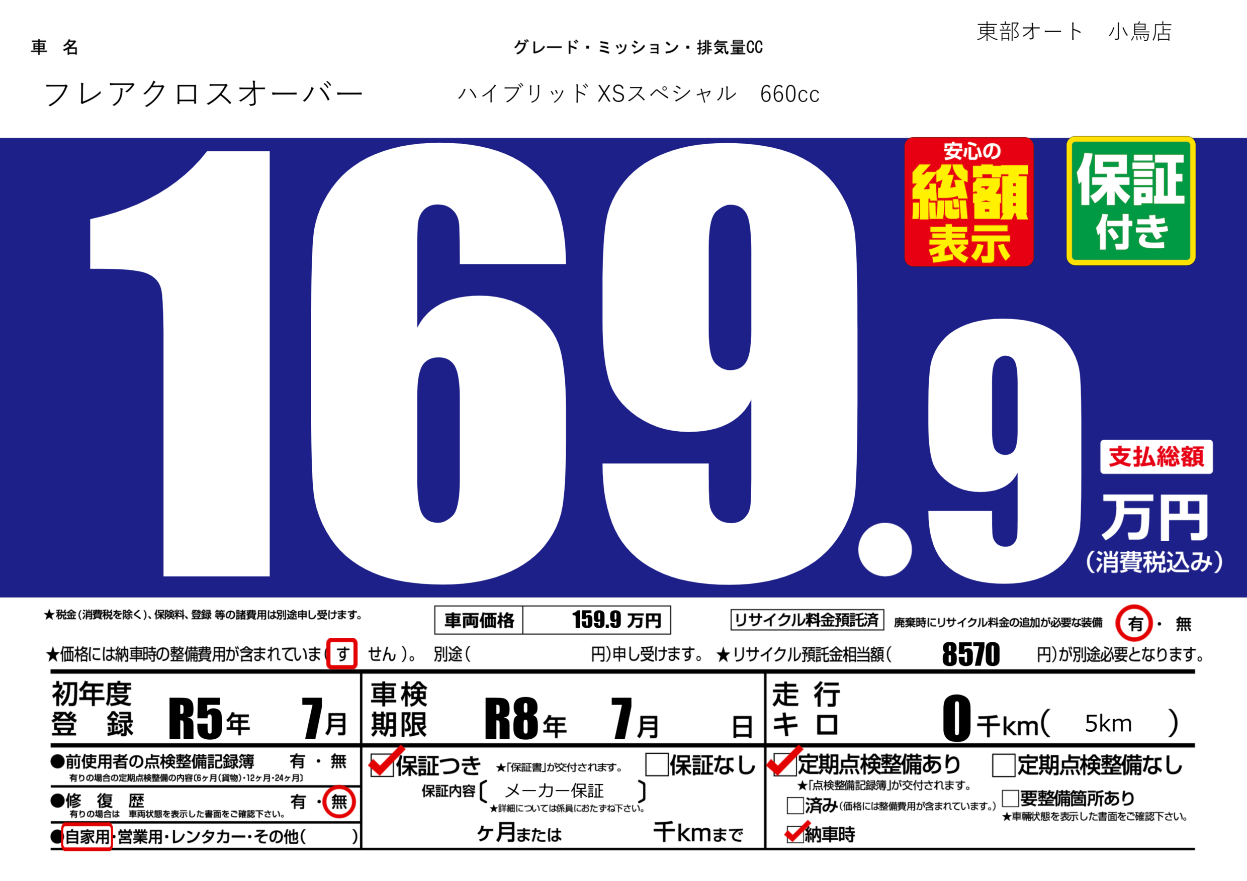| 車検制限 | R8年 7月 - 日 | ||