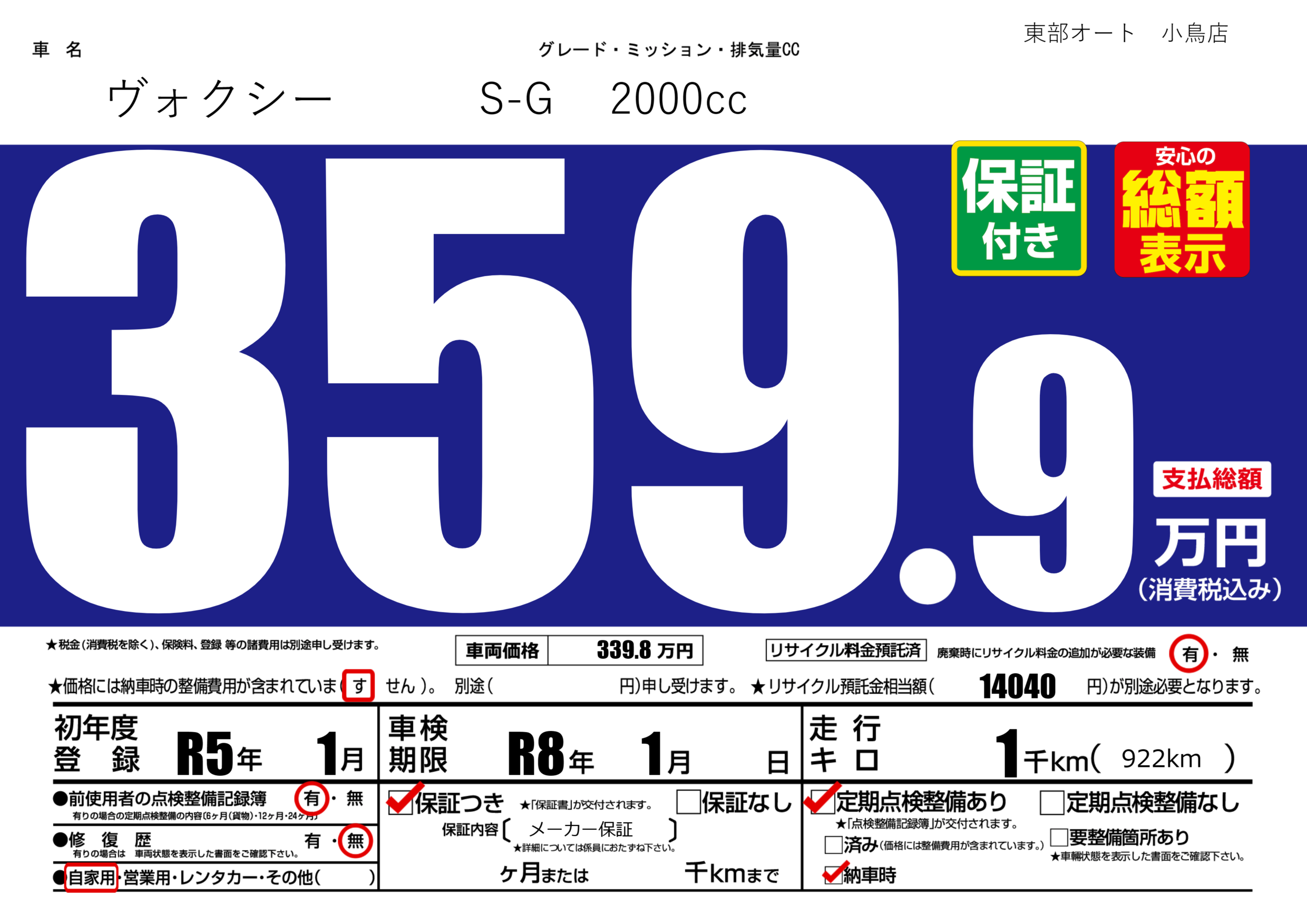 | 車名 | ヴォクシー | グレード ミッション 排気量 |