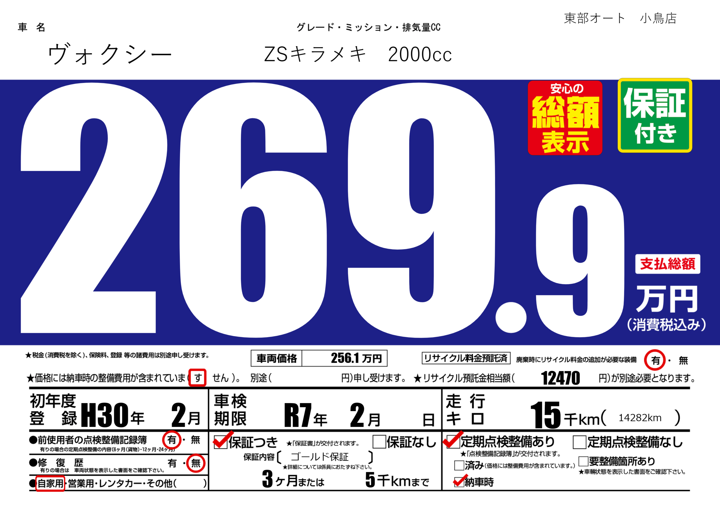 | 車名 | ヴォクシー | グレード ミッション 排気量 |