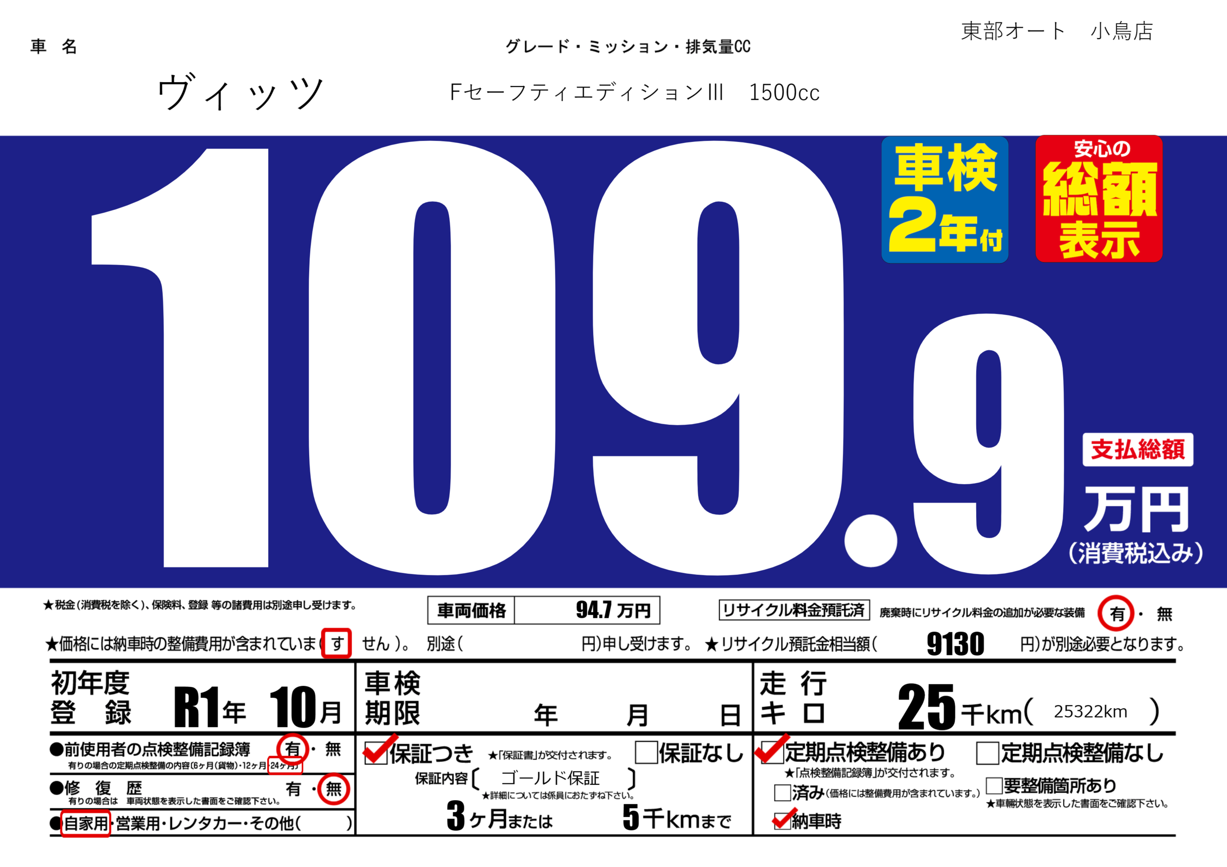 保証付き 保証内容( ゴールド保証) 3ヶ月または(5)千kmまで |