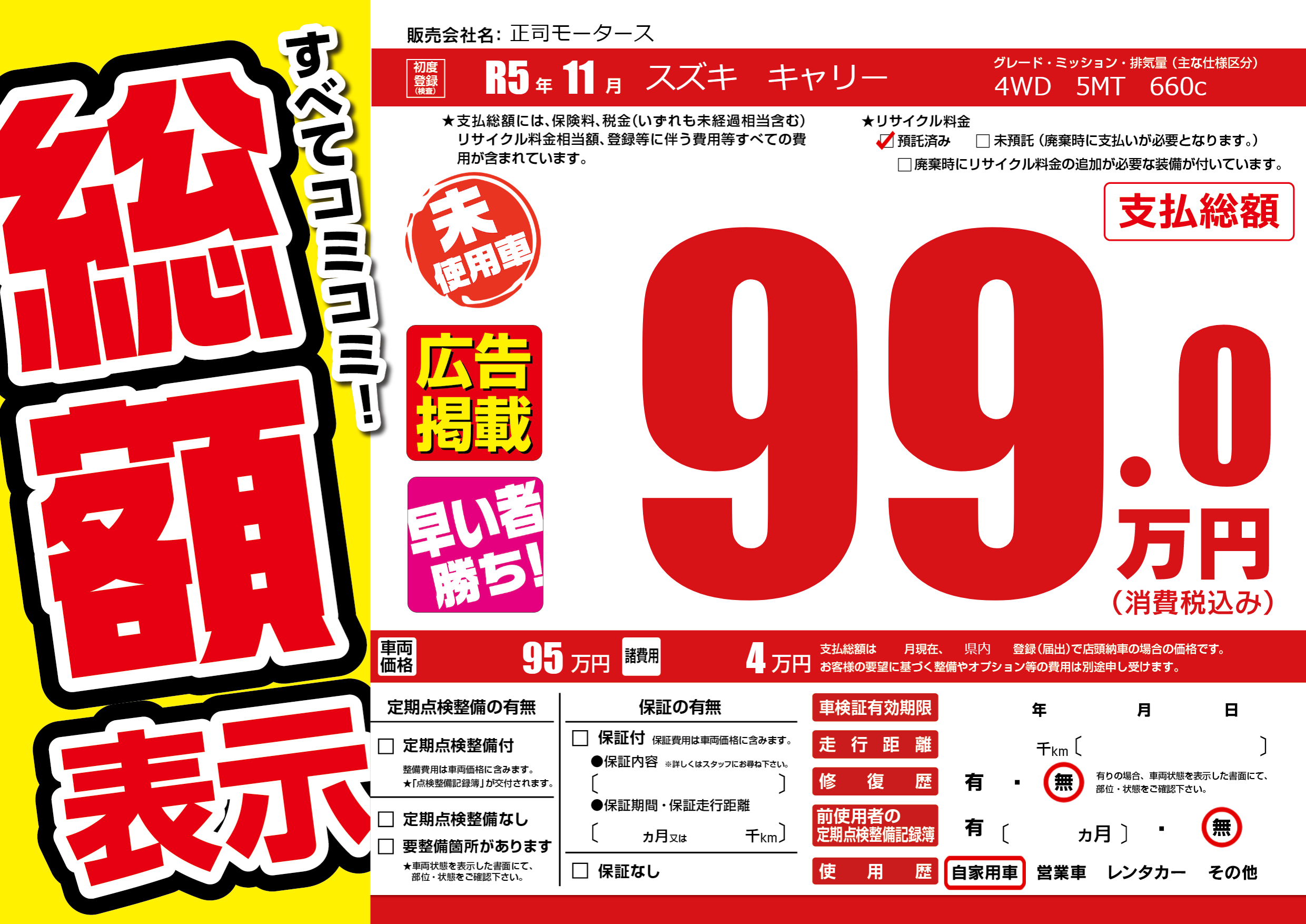 | 車検制限 | - 年 - 月 - 日 | ||