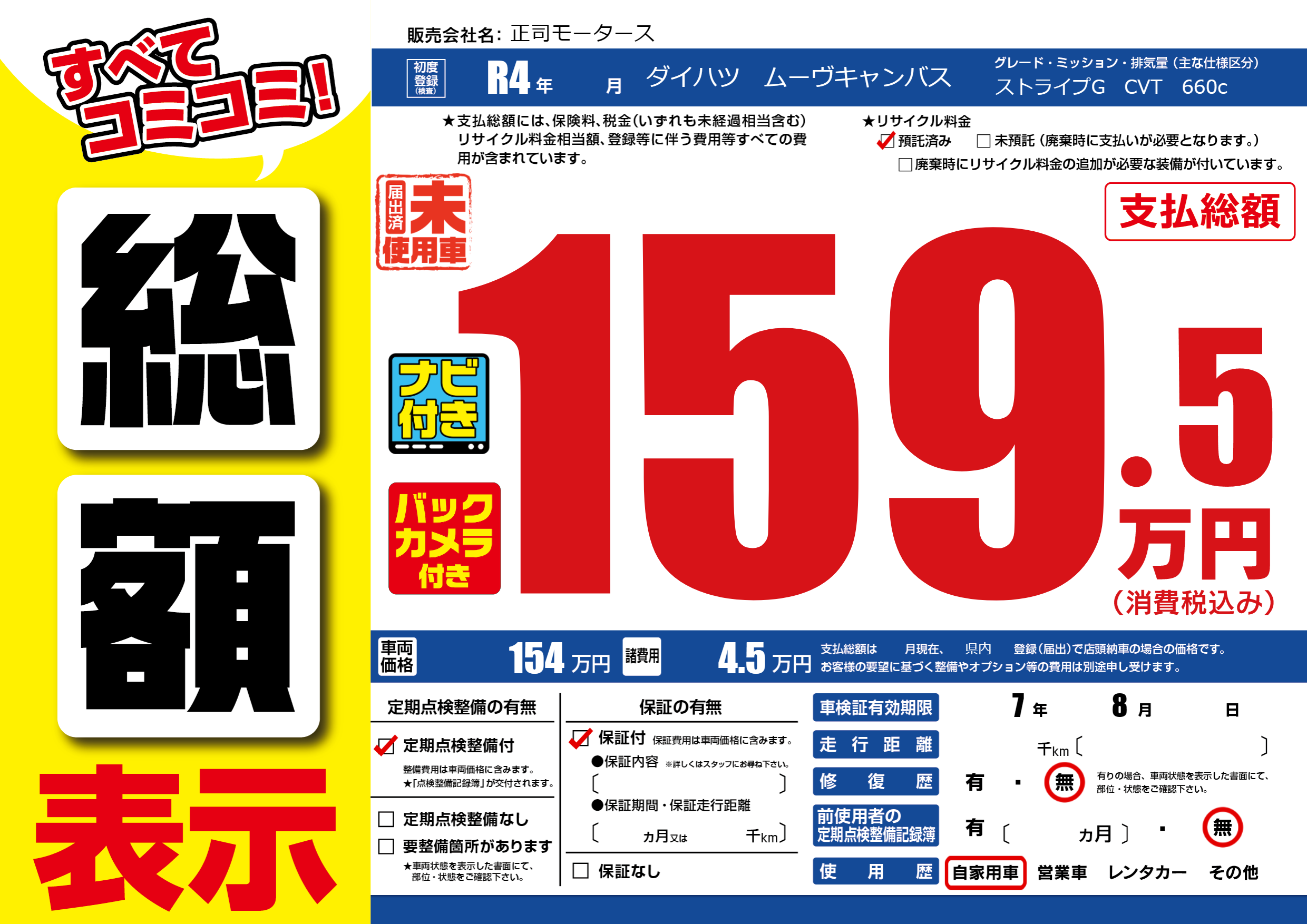 | 走行キロ | - | 初年度登録 | R4年---月 |