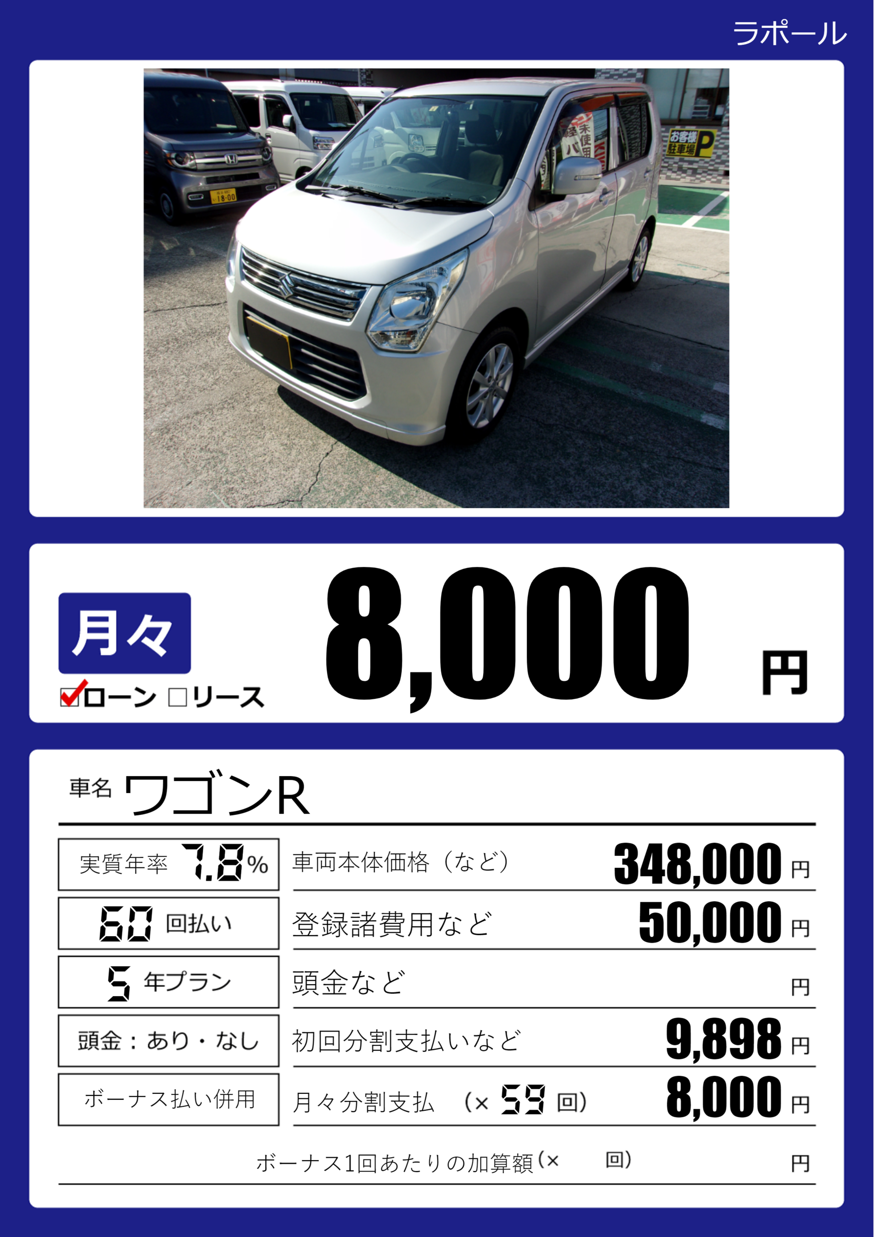 | 車名 | ワゴンR | グレード ミッション 排気量 |