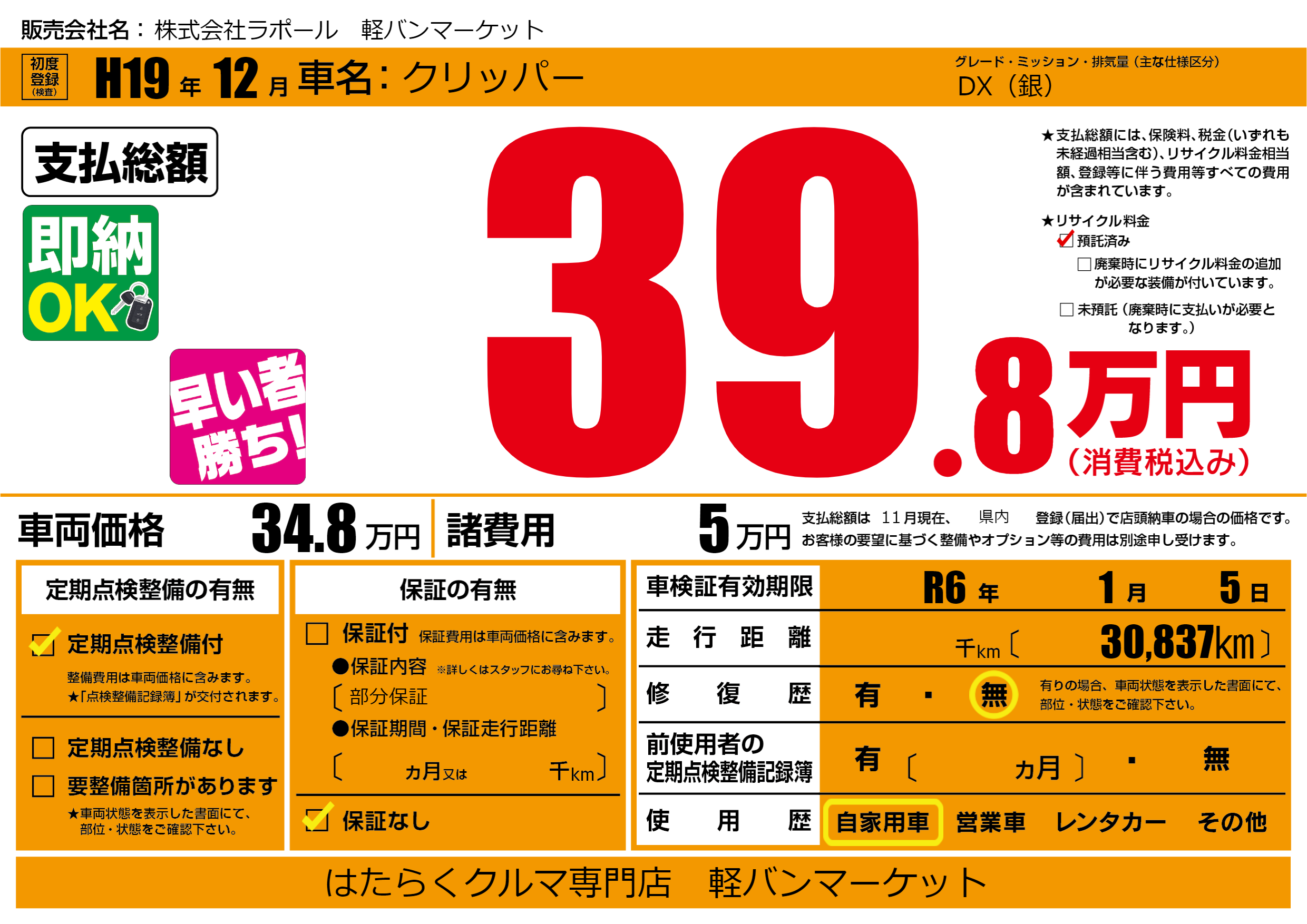 | 車名 | クリッパー | グレード ミッション 排気量 |