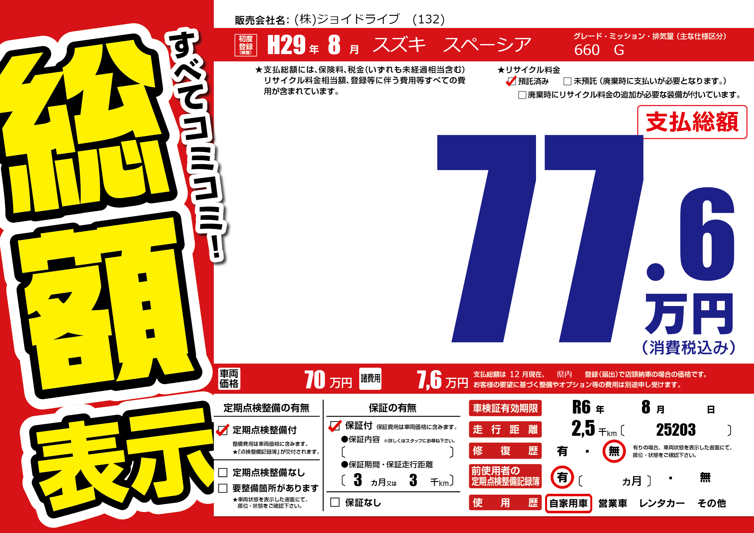 | 車検制限 | R6年 8月 - 日 | ||