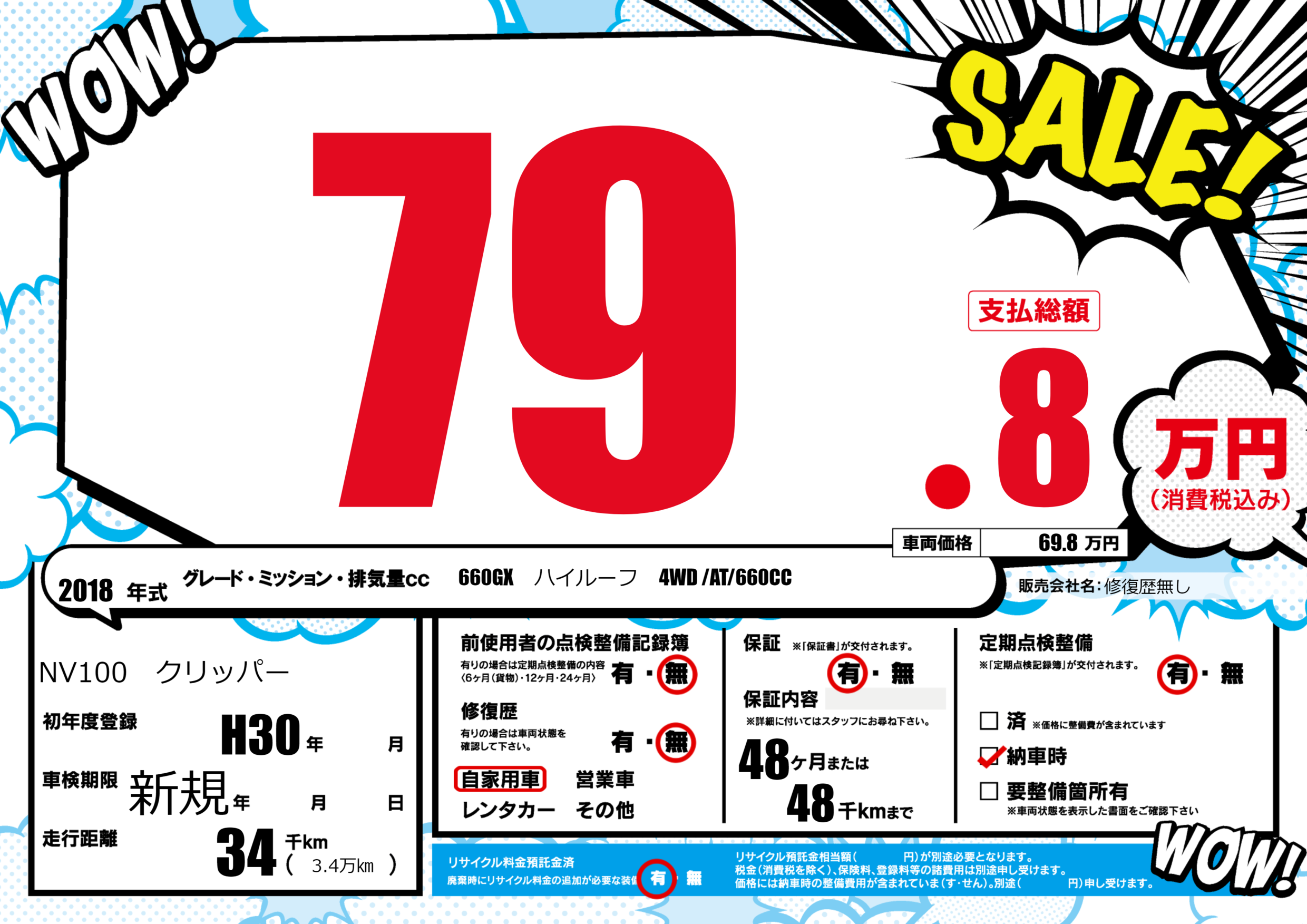 | 定期点検整備 | 定期点検整備あり 納車時あり | ||