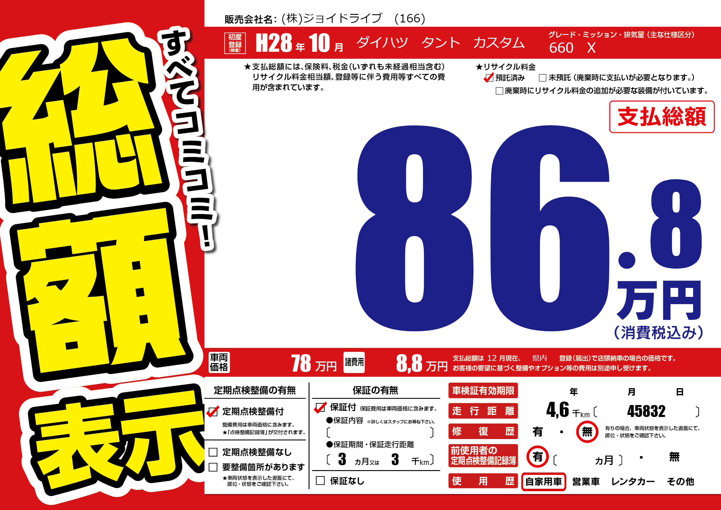 保証付き 保証内容(---) 3ヶ月または(3)千kmまで |