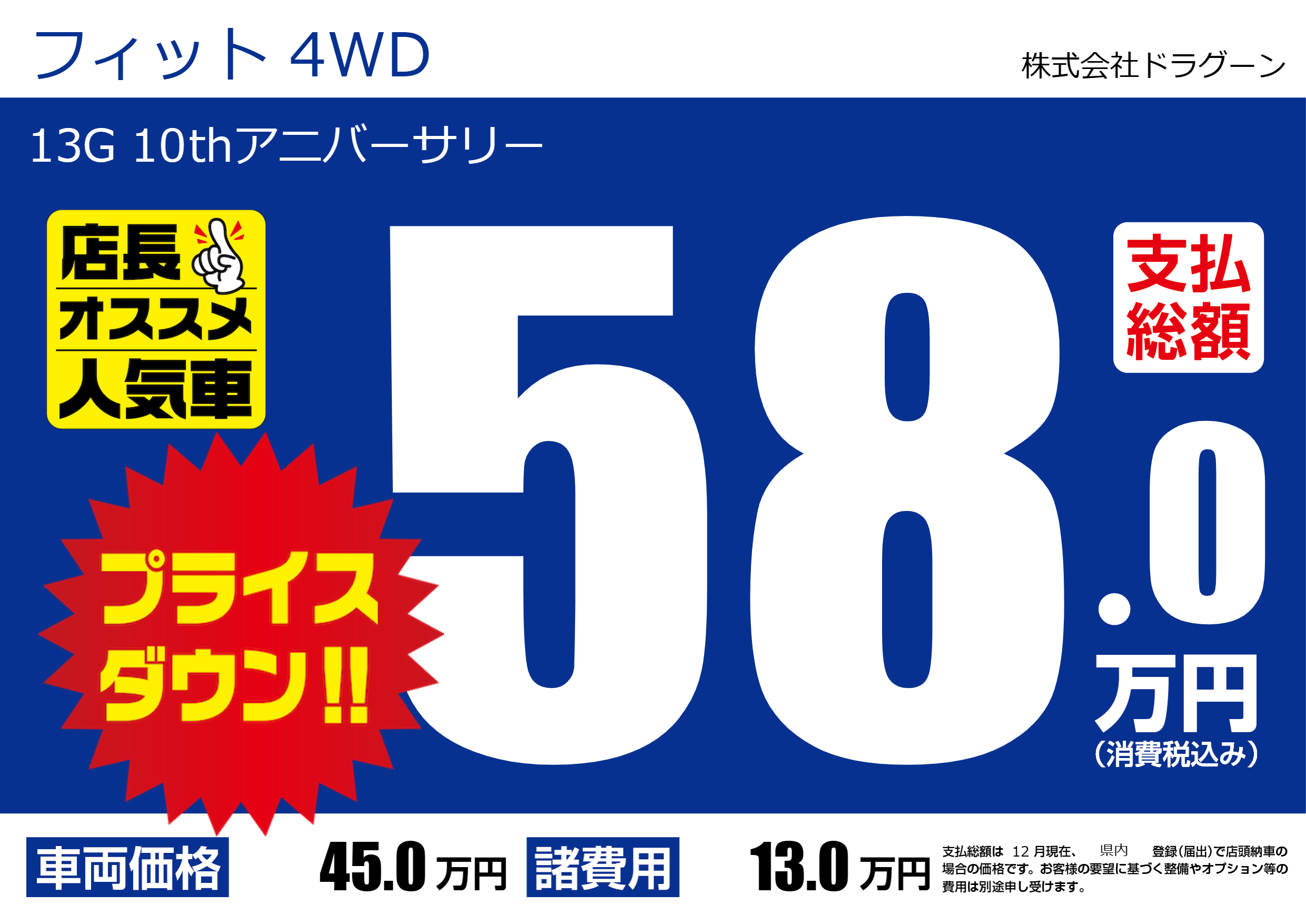| 車名 | フィット 4WD | グレード ミッション 排気量 |